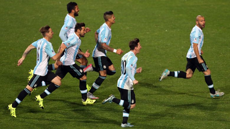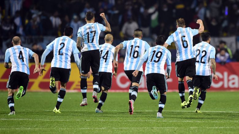 La selección argentina celebra su victoria sobre Colombia en los cuartos de final de la Copa América 2015. (Getty)