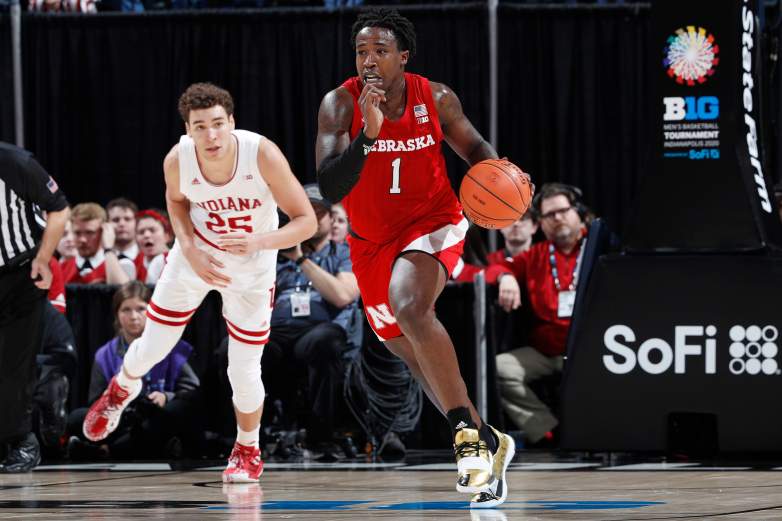 Getty Kevin Cross #1 de los Nebraska Cornhuskers dribla el balón delante de Race Thompson #25 de los Indiana Hoosiers en la segunda mitad durante la primera ronda del torneo de baloncesto masculino Big Ten en Bankers Life Fieldhouse el 11 de marzo de 2020 en Indianápolis, Indiana.
