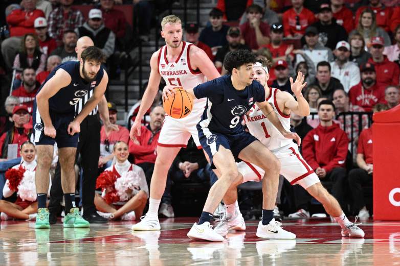 Getty LINCOLN, NEBRASKA – 21 DE FEBRERO: Melih Tunca #9 de los Penn State Nittany Lions hace dibbles contra Sam Hoiberg #1 de los Nebraska Cornhuskers durante la primera mitad en el Pinnacle Bank Arena el 21 de febrero de 2026 en Lincoln, Nebraska.
