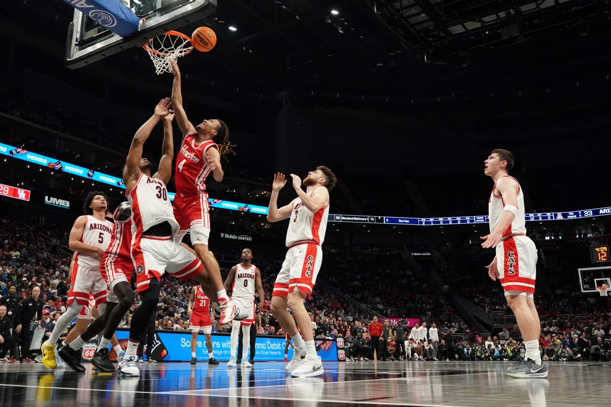 Getty KANSAS CITY, MISSOURI – 14 DE MARZO: Anthony Dell’Orso #3 de los Arizona Wildcats rebota contra Kingston Flemings #4 de los Houston Cougars en la primera mitad durante el partido del campeonato del Torneo Big 12 en el T-Mobile Center el 14 de marzo de 2026 en Kansas City, Missouri. (Foto de Ed Zurga/Getty Images)