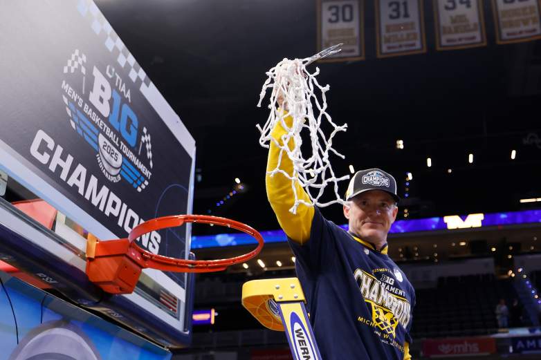 Getty El entrenador en jefe Dusty May de los Wolverines de Michigan celebra después de cortar la anota después de derrotar a los Wisconsin Badgers en el campeonato del torneo de baloncesto masculino Big Ten en Gainbridge Fieldhouse el 16 de marzo de 2025 en Indianápolis, Indiana.