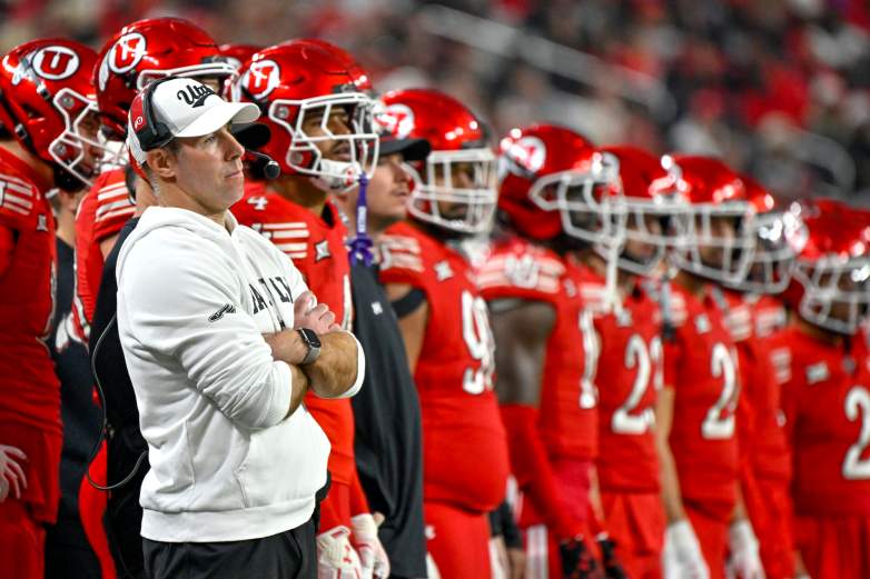 Getty El entrenador en jefe Morgan Scalley de los Utah Utes observa desde la banda durante la segunda mitad del SRS Distribution Las Vegas Bowl contra los Nebraska Cornhuskers en el Allegiant Stadium el 31 de diciembre de 2025 en Las Vegas, Nevada.