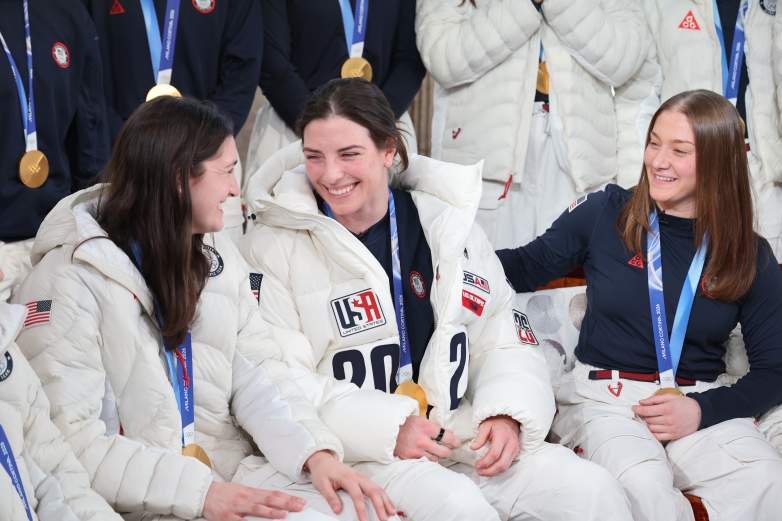 Getty Las atletas olímpicas estadounidenses Megan Keller, Hilary Knight y Aerin Frankel aparecen en el programa Today de NBC el 20 de febrero de 2026 en Milán, Italia.