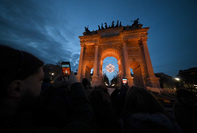 Getty El pebetero de los Juegos Olímpicos de Invierno Milano Cortina 2026 diseñado por Marco Balich se muestra en el monumento Arco della Pace en Milán, norte de Italia, el 18 de febrero de 2026.