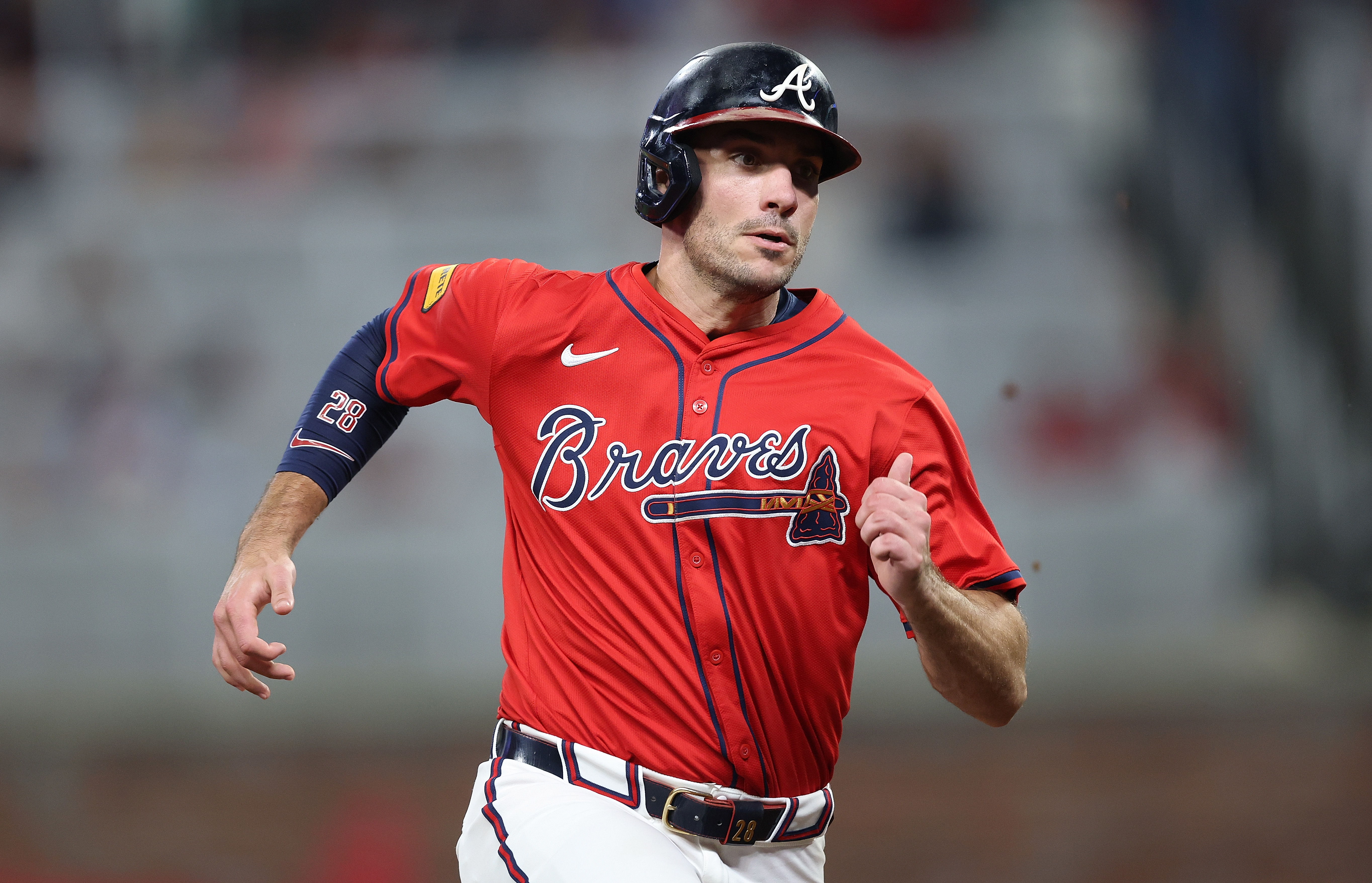 Getty Matt Olson #28 de los Bravos de Atlanta recorre las bases después de un jonrón durante la cuarta entrada contra los Astros de Houston en Truist Park el 13 de septiembre de 2025 en Atlanta, Georgia.