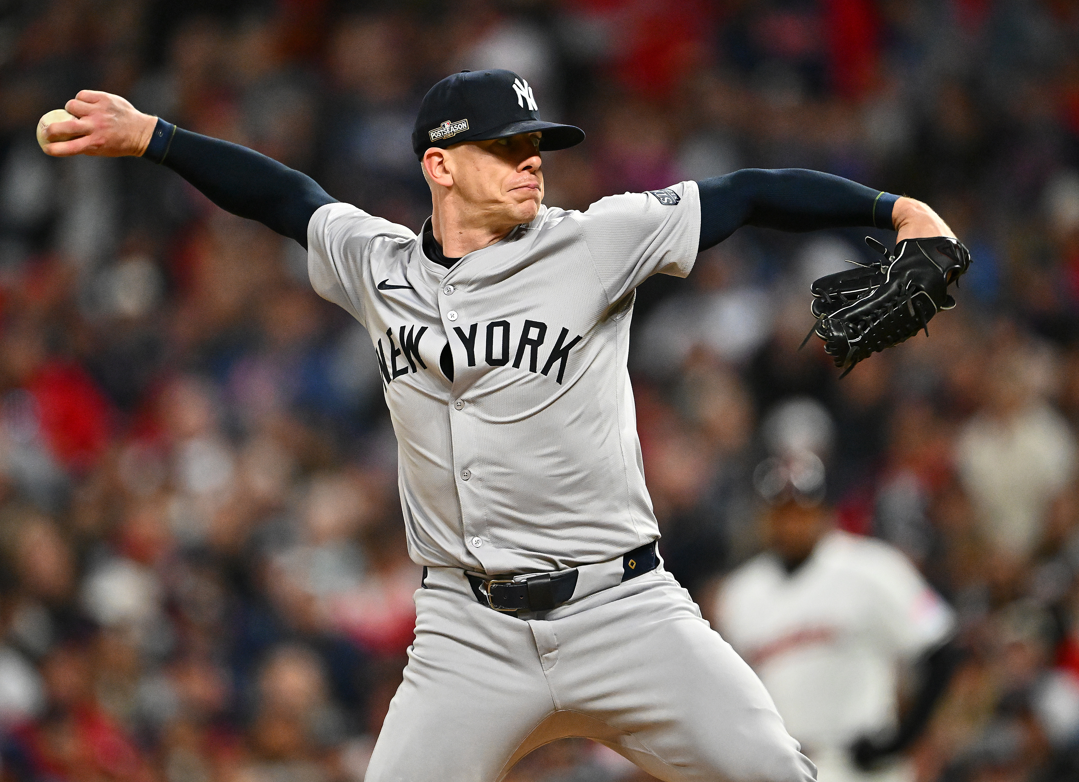 Getty CLEVELAND, OHIO – 17 DE OCTUBRE: Ian Hamilton #71 de los New York Yankees lanza un lanzamiento durante la sexta entrada contra los Cleveland Guardians durante el Juego Tres de la Serie de Campeonato de la Liga Americana en Progressive Field el 17 de octubre de 2024 en Cleveland, Ohio. (Foto de Jason Miller/Getty Images)