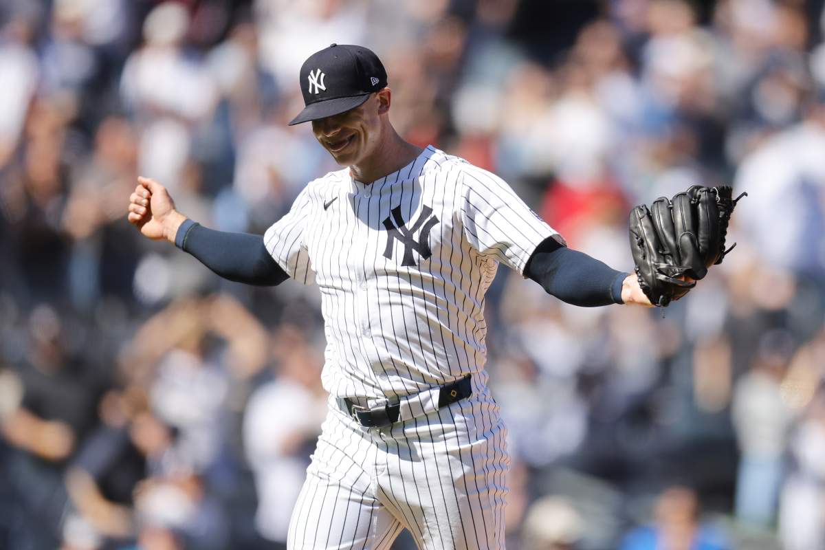 Getty Ian Hamilton #71 de los Yankees de Nueva York reacciona al ser retirado del juego en la novena entrada contra los Azulejos de Toronto en el Yankee Stadium el 20 de septiembre de 2023 en el distrito del Bronx de la ciudad de Nueva York.