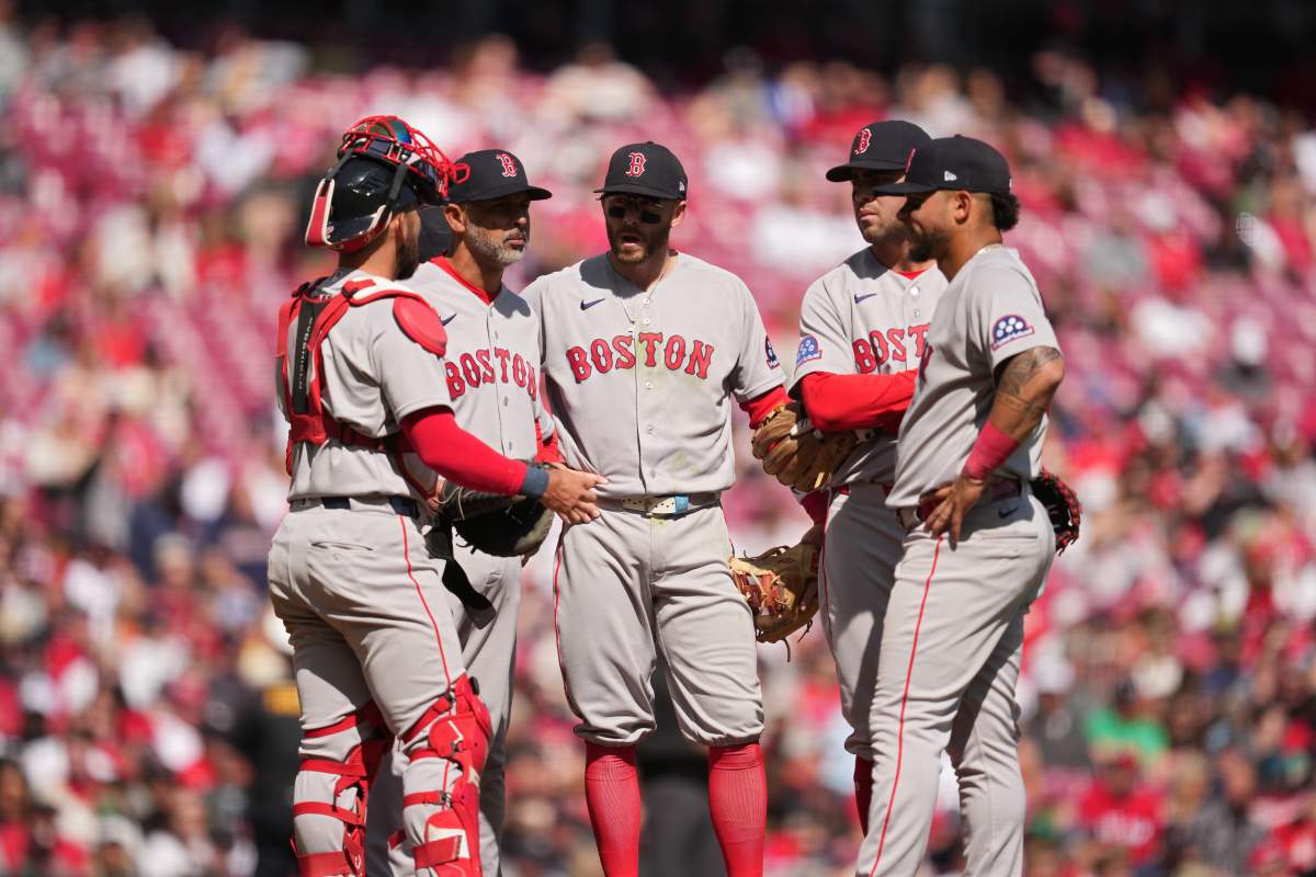 Getty CINCINNATI, OHIO – 29 DE MARZO: El mánager de los Boston Red Sox, Alex Cora, se encuentra en el montículo del lanzador durante un cambio de lanzador en la sexta entrada de un juego de béisbol contra los Cincinnati Reds en el Great American Ball Park el 29 de marzo de 2026 en Cincinnati, Ohio. (Foto de Jeff Dean/Getty Images)