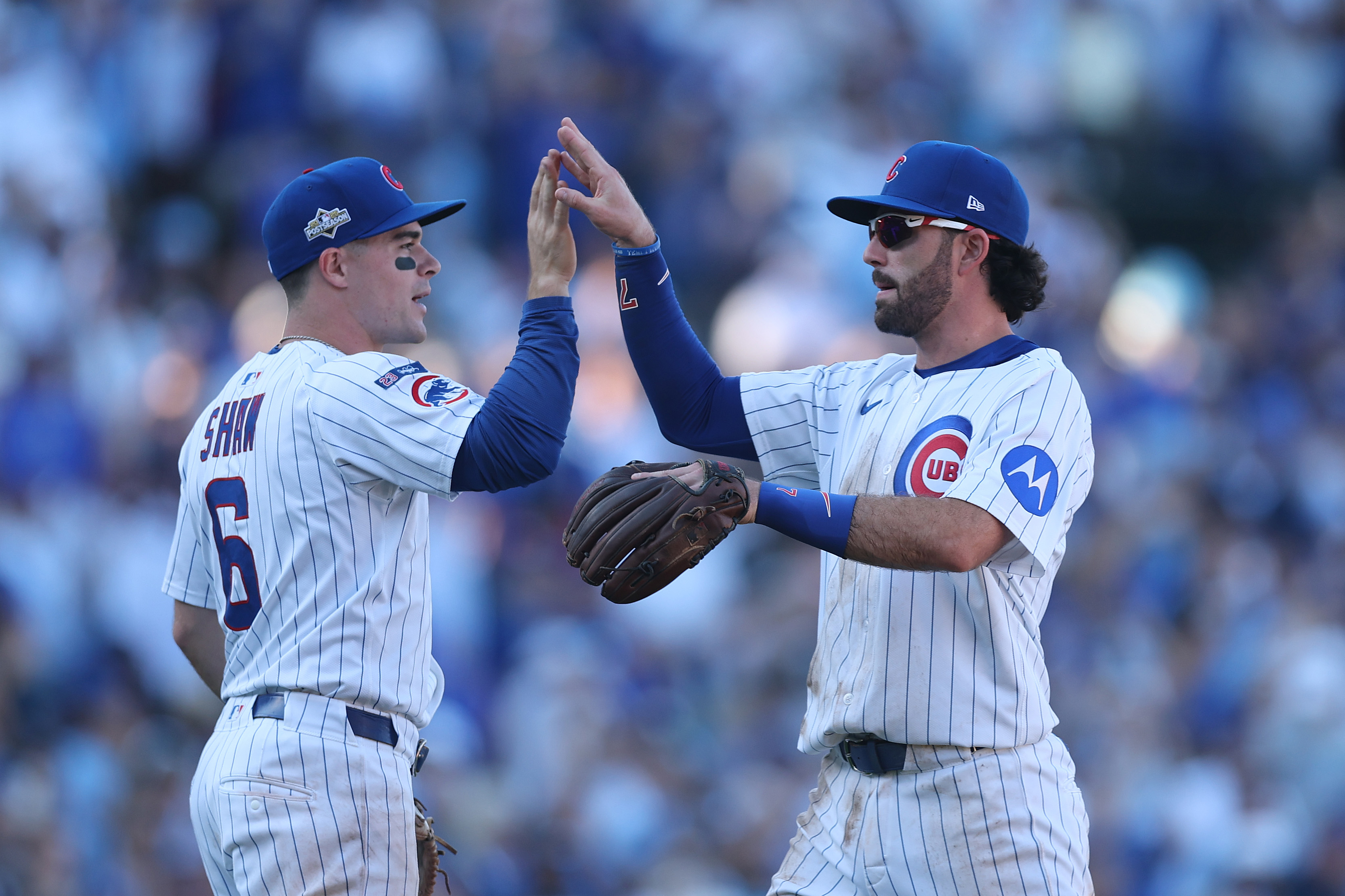 Getty CHICAGO, ILLINOIS – 30 DE SEPTIEMBRE: Matt Shaw #6 y Dansby Swanson #7 de los Cachorros de Chicago celebran después de derrotar a los Padres de San Diego en el Juego Uno de la Serie de Comodines de la Liga Nacional en Wrigley Field el 30 de septiembre de 2025 en Chicago, Illinois. (Foto de Michael Reaves/Getty Images)