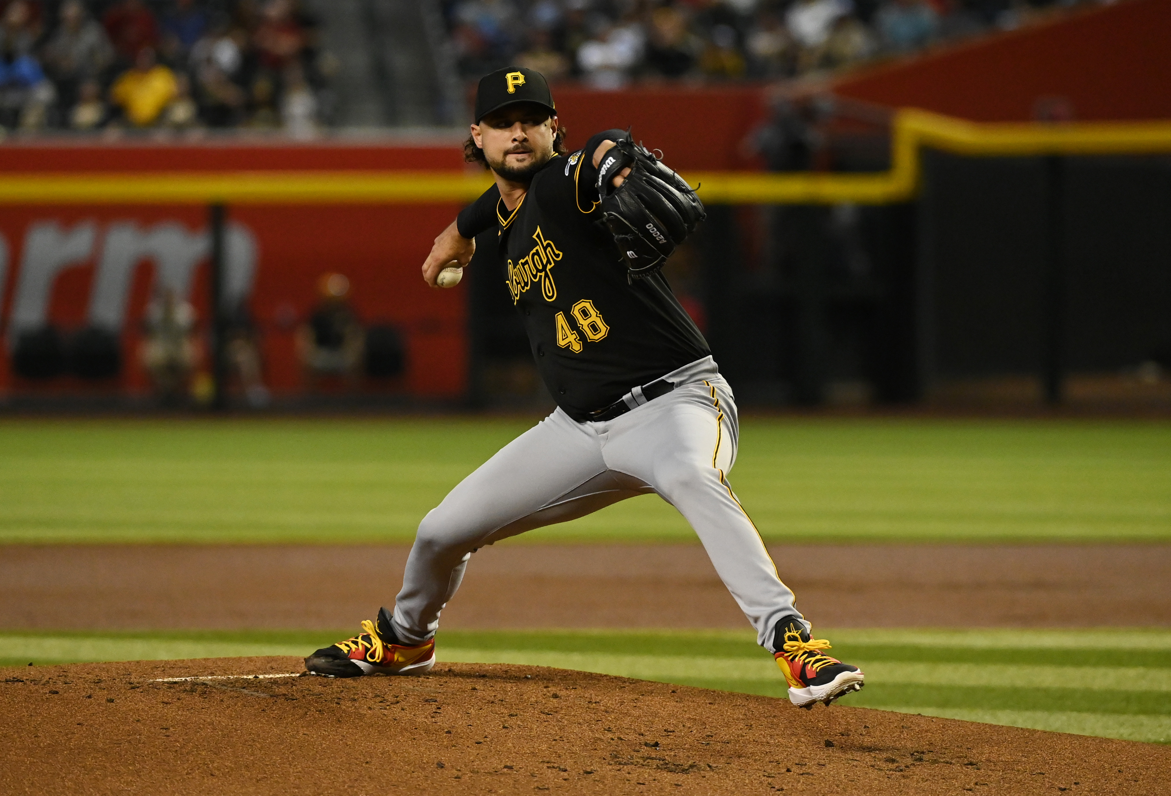 Getty Tyler Beede #48 de los Pittsburgh Pirates lanza en la primera entrada contra los Arizona Diamondbacks en Chase Field el 8 de agosto de 2022 en Phoenix, Arizona.