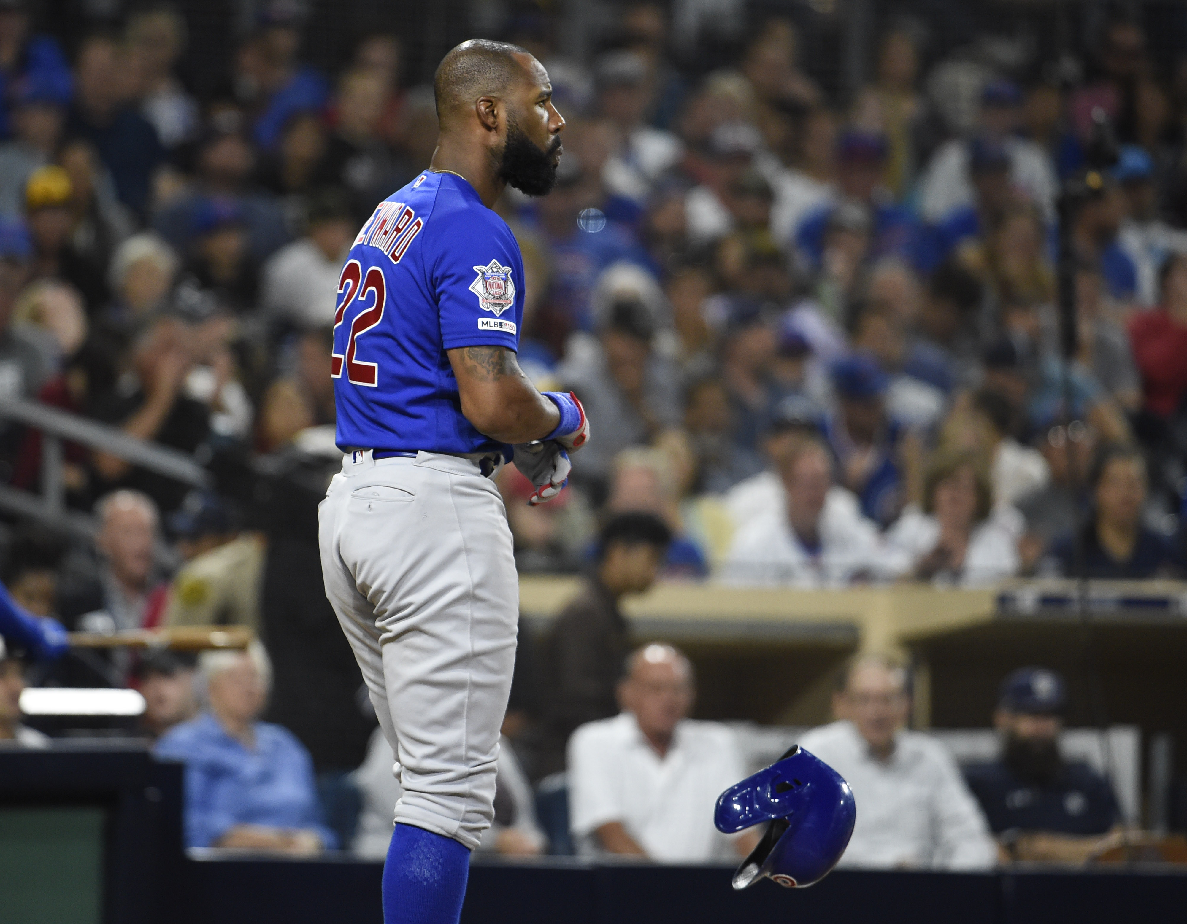 Getty SAN DIEGO, CA – 11 DE SEPTIEMBRE: Jason Heyward #22 de los Chicago Cubs deja caer su casco tras poncharse haciendo swing durante la séptima entrada de un partido de béisbol contra los San Diego Padres en Petco Park el 11 de septiembre de 2019 en San Diego, California. (Foto de Denis Poroy/Getty Images)