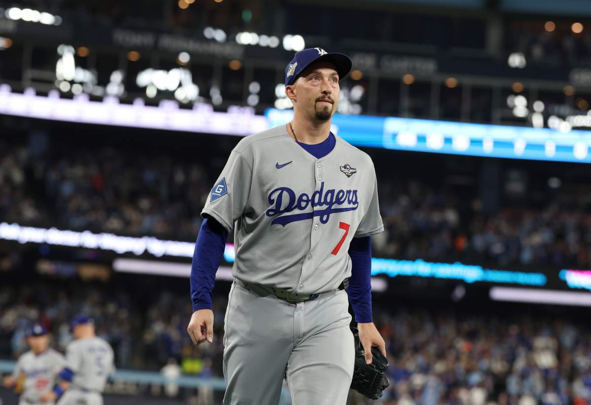Getty LOS ÁNGELES, CALIFORNIA – 29 DE OCTUBRE: Blake Snell #7 de los Dodgers de Los Ángeles reacciona durante la quinta entrada contra los Azulejos de Toronto en el quinto juego de la Serie Mundial de 2025 en el Dodger Stadium el 29 de octubre de 2025 en Los Ángeles, California. (Foto de Luke Hales/Getty Images)