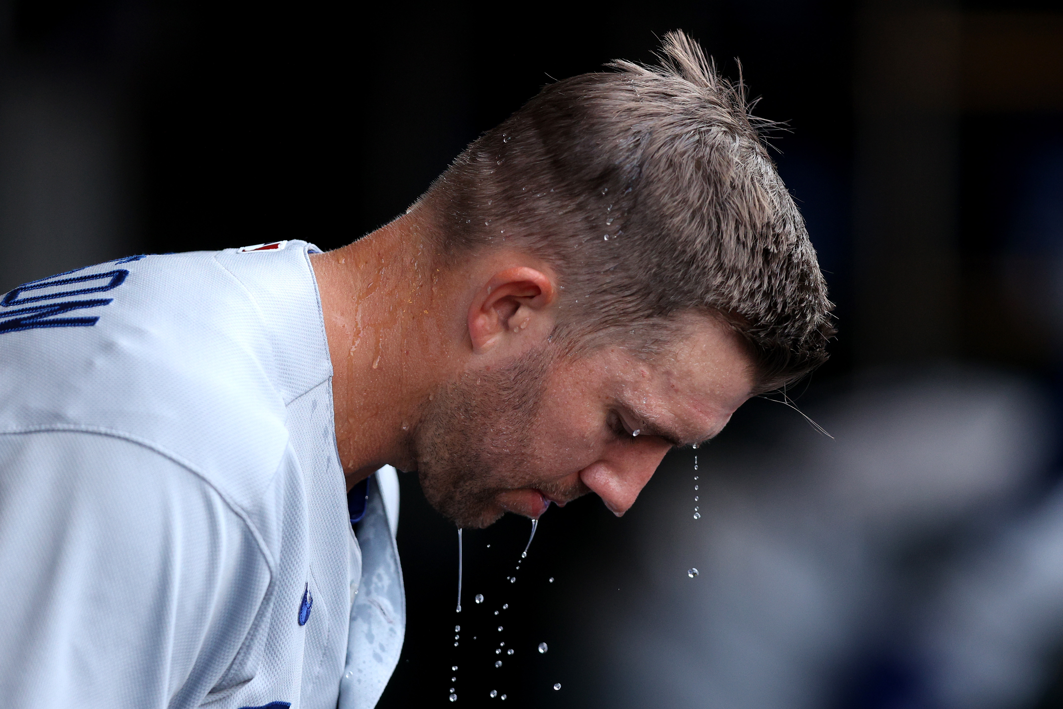 Getty SAN FRANCISCO, CALIFORNIA – 2 DE AGOSTO: El lanzador abridor Tyler Anderson #31 de los Dodgers de Los Ángeles se salpica agua en la cara antes de su partido contra los Gigantes de San Francisco en el Oracle Park el 2 de agosto de 2022 en San Francisco, California. (Foto de Ezra Shaw/Getty Images)