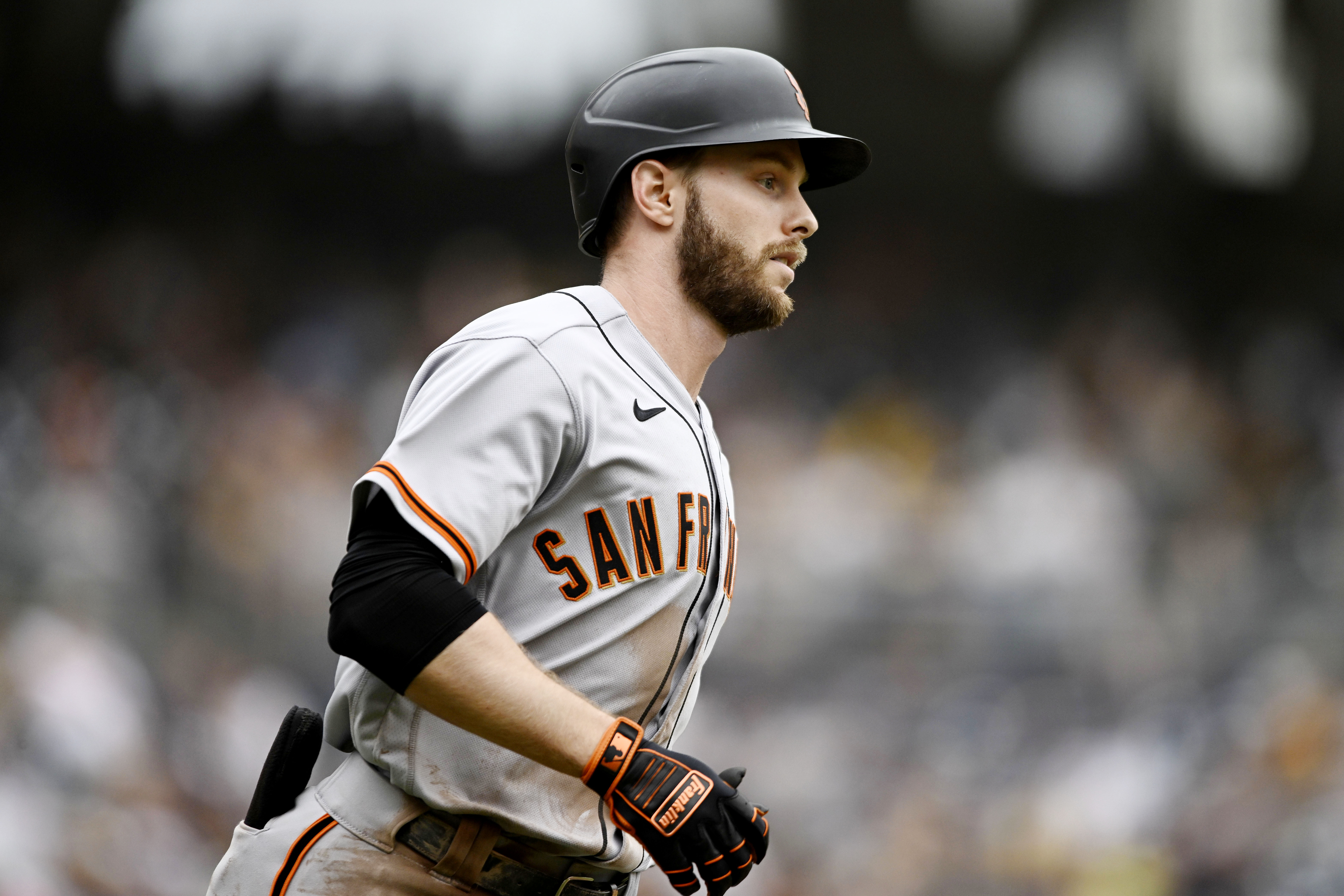 Getty SAN DIEGO, CA – 5 DE OCTUBRE: Austin Slater #13 de los San Francisco Giants recorre las bases después de conectar un jonrón solitario durante la séptima entrada de un juego de béisbol contra los San Diego Padres 5 de octubre de 2022 en Petco Park en San Diego, California. (Foto de Denis Poroy/Getty Images)