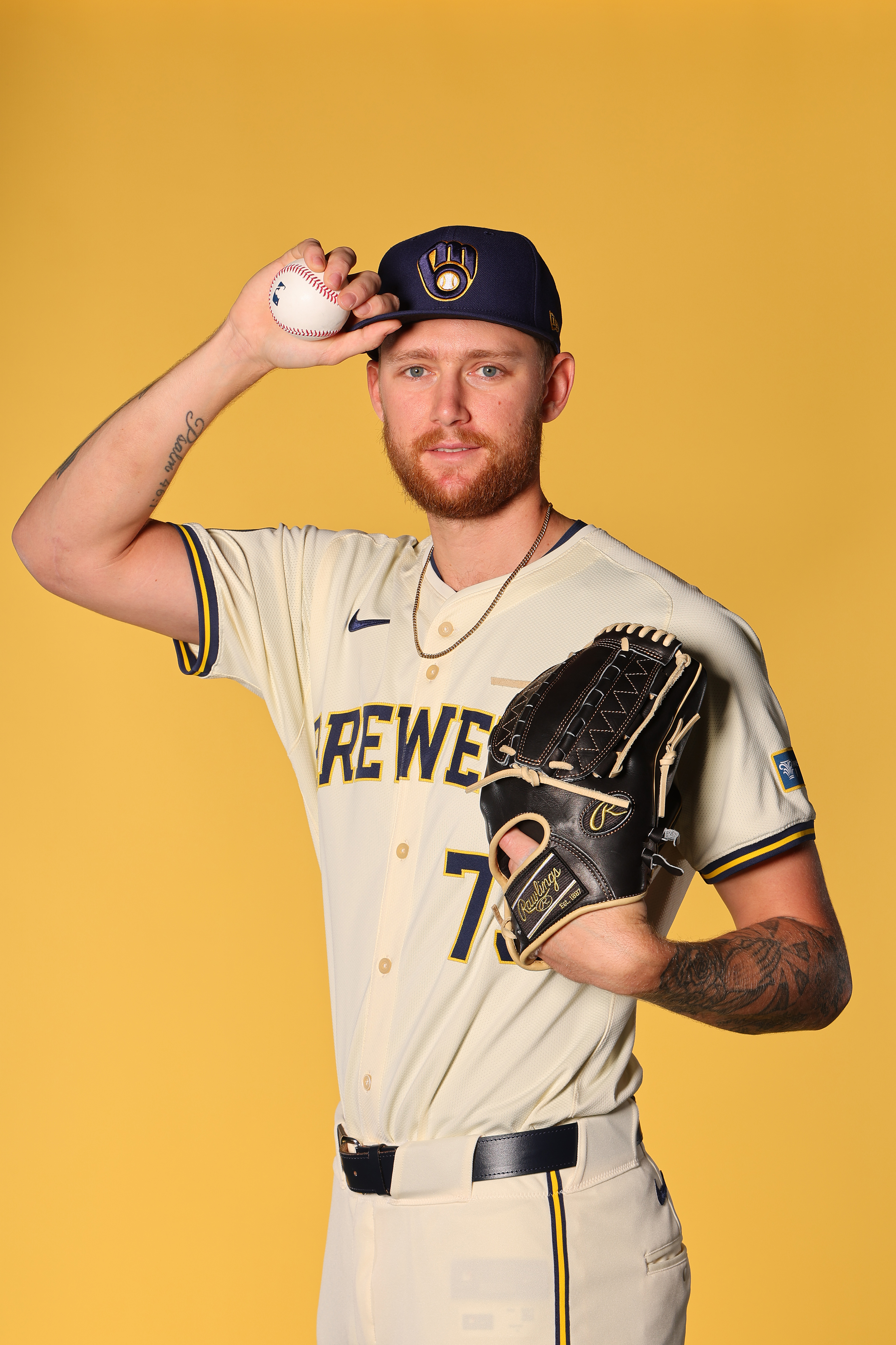 Getty Easton McGee #73 de los Cerveceros de Milwaukee posa para un retrato durante el Día de la Foto en American Family Fields de Phoenix el 22 de febrero de 2024 en Phoenix, Arizona.