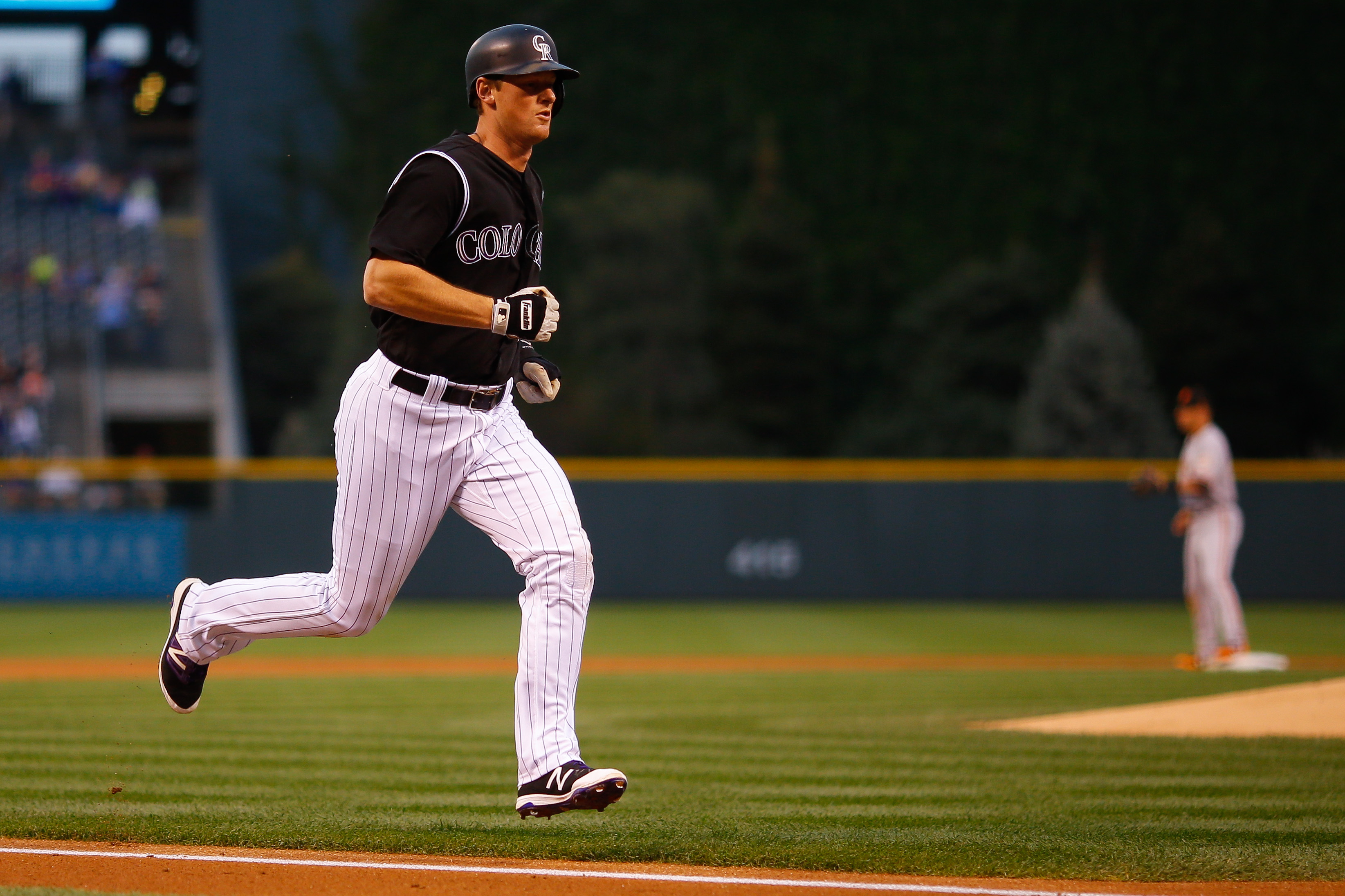 Getty DENVER, CO – 5 DE SEPTIEMBRE: DJ LeMahieu #9 de los Colorado Rockies corre hacia home en su camino a anotar en un elevado de sacrificio del bate de Gerardo Parra durante la primera entrada contra los San Francisco Giants en Coors Field el 5 de septiembre de 2017 en Denver, Colorado. (Foto de Justin Edmonds/Getty Images)