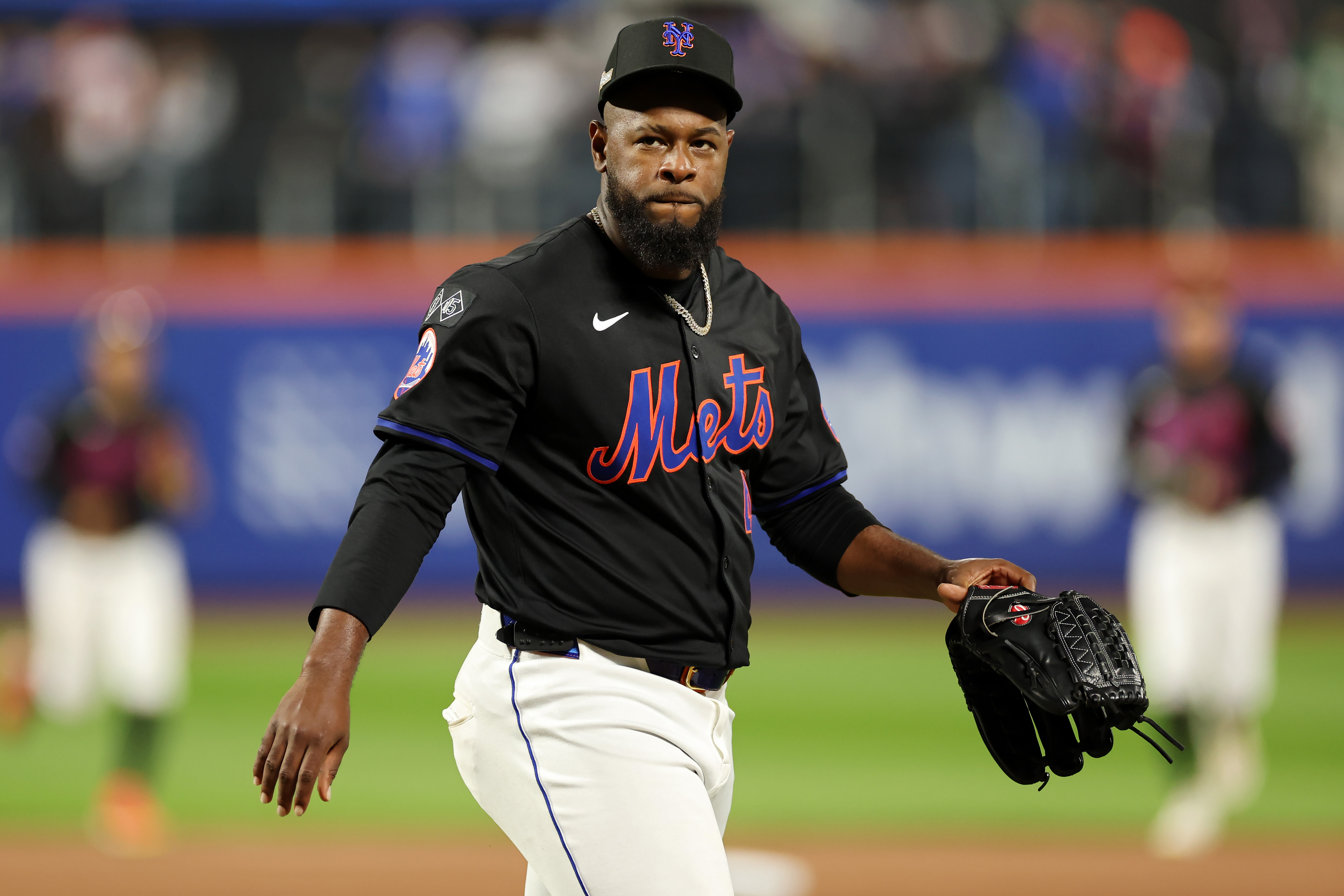 Getty NUEVA YORK, NUEVA YORK – 16 DE OCTUBRE: Luis Severino #40 de los Mets de Nueva York camina por el campo en la cuarta entrada contra los Dodgers de Los Ángeles durante el Juego Tres de la Serie de Campeonato de la Liga Nacional en Citi Field el 16 de octubre de 2024 en la ciudad de Nueva York. (Foto de Sarah Stier/Getty Images)