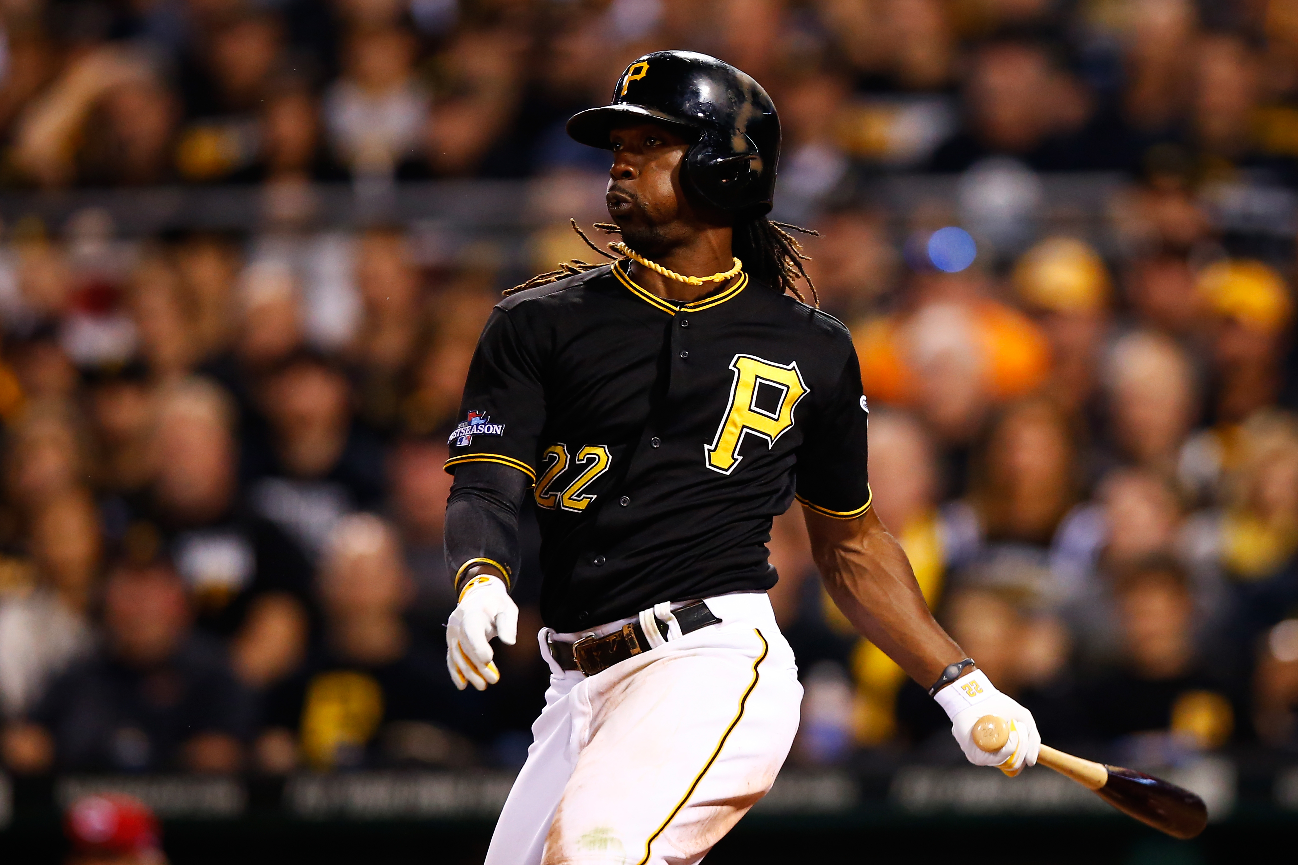 Getty PITTSBURGH, PA – 1 DE OCTUBRE: Andrew McCutchen #22 de los Pittsburgh Pirates conecta un sencillo en la sexta entrada contra los Cincinnati Reds durante el juego de comodín de la Liga Nacional en el PNC Park el 1 de octubre de 2013 en Pittsburgh, Pensilvania. (Foto de Jared Wickerham/Getty Images)