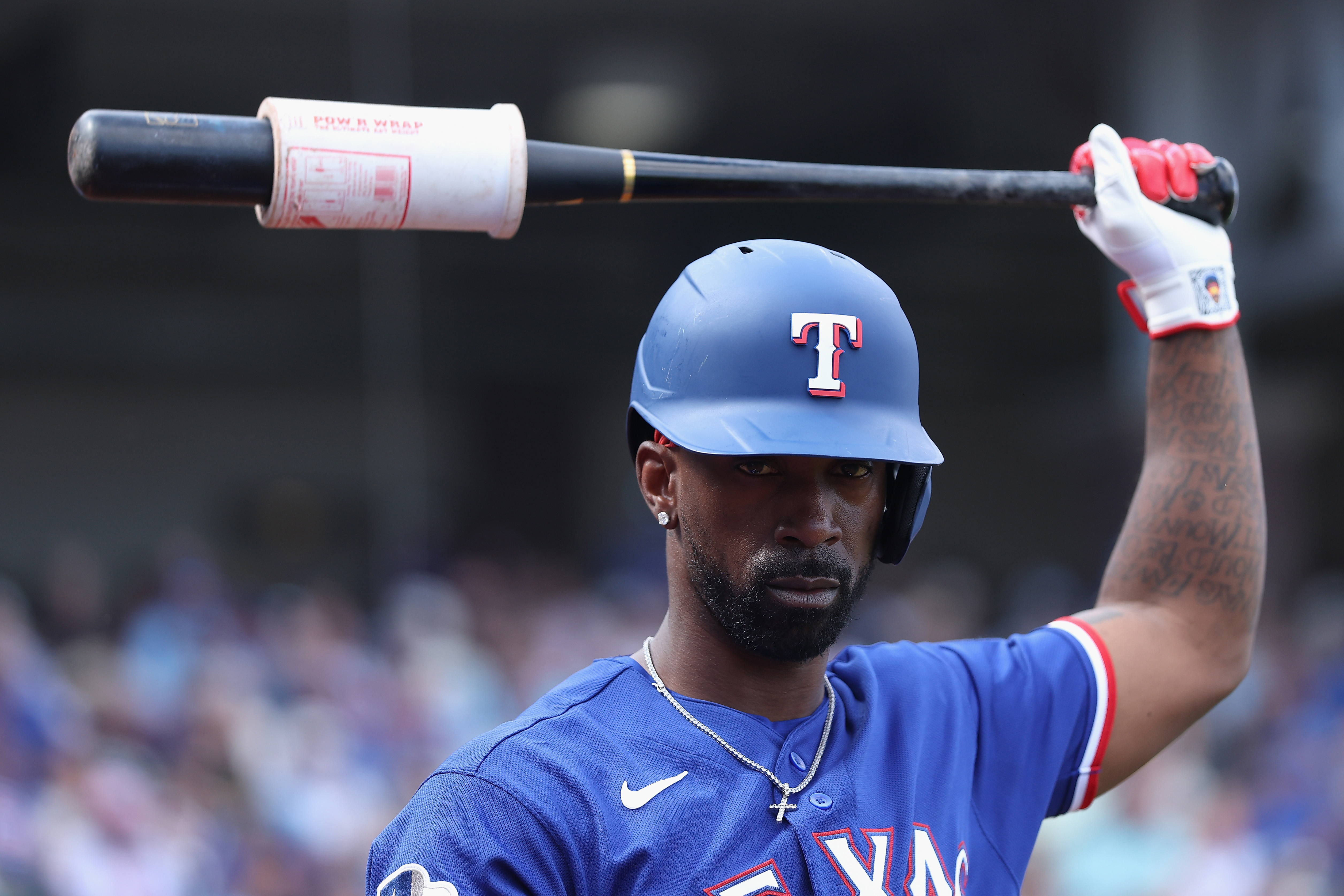 Getty SURPRISE, ARIZONA – 10 DE MARZO: Andrew McCutchen #4 de los Texas Rangers calienta en la espera durante la tercera entrada del juego de entrenamiento de primavera contra los Chicago Cubs en el Surprise Stadium el 10 de marzo de 2026 en Surprise, Arizona. (Foto de Christian Petersen/Getty Images)