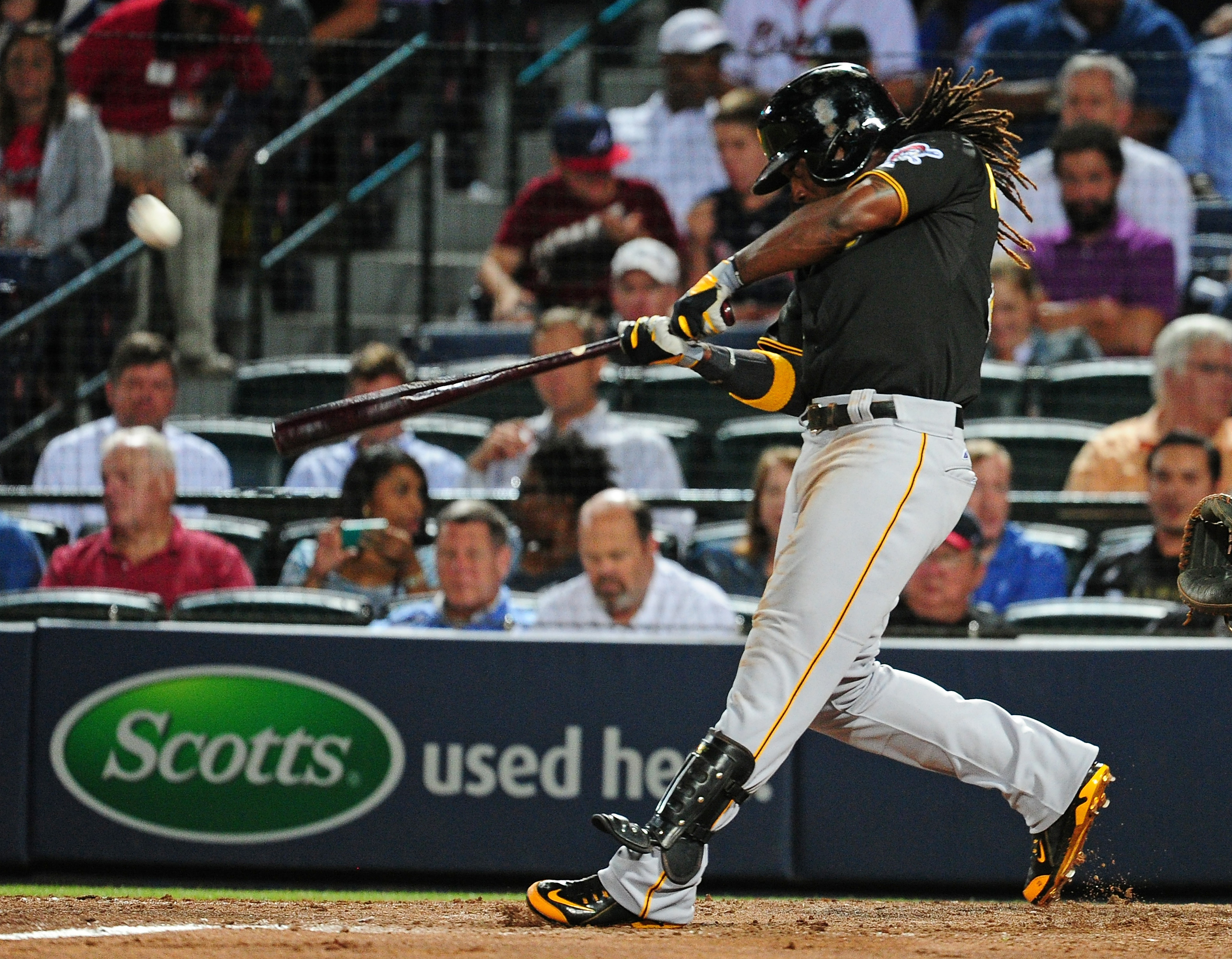 Getty ATLANTA, GA – 24 DE SEPTIEMBRE: Andrew McCutchen #22 de los Piratas de Pittsburgh conecta un jonrón de dos carreras en la quinta entrada contra los Bravos de Atlanta en Turner Field el 24 de septiembre de 2014 en Atlanta, Georgia. (Foto de Scott Cunningham/Getty Images)