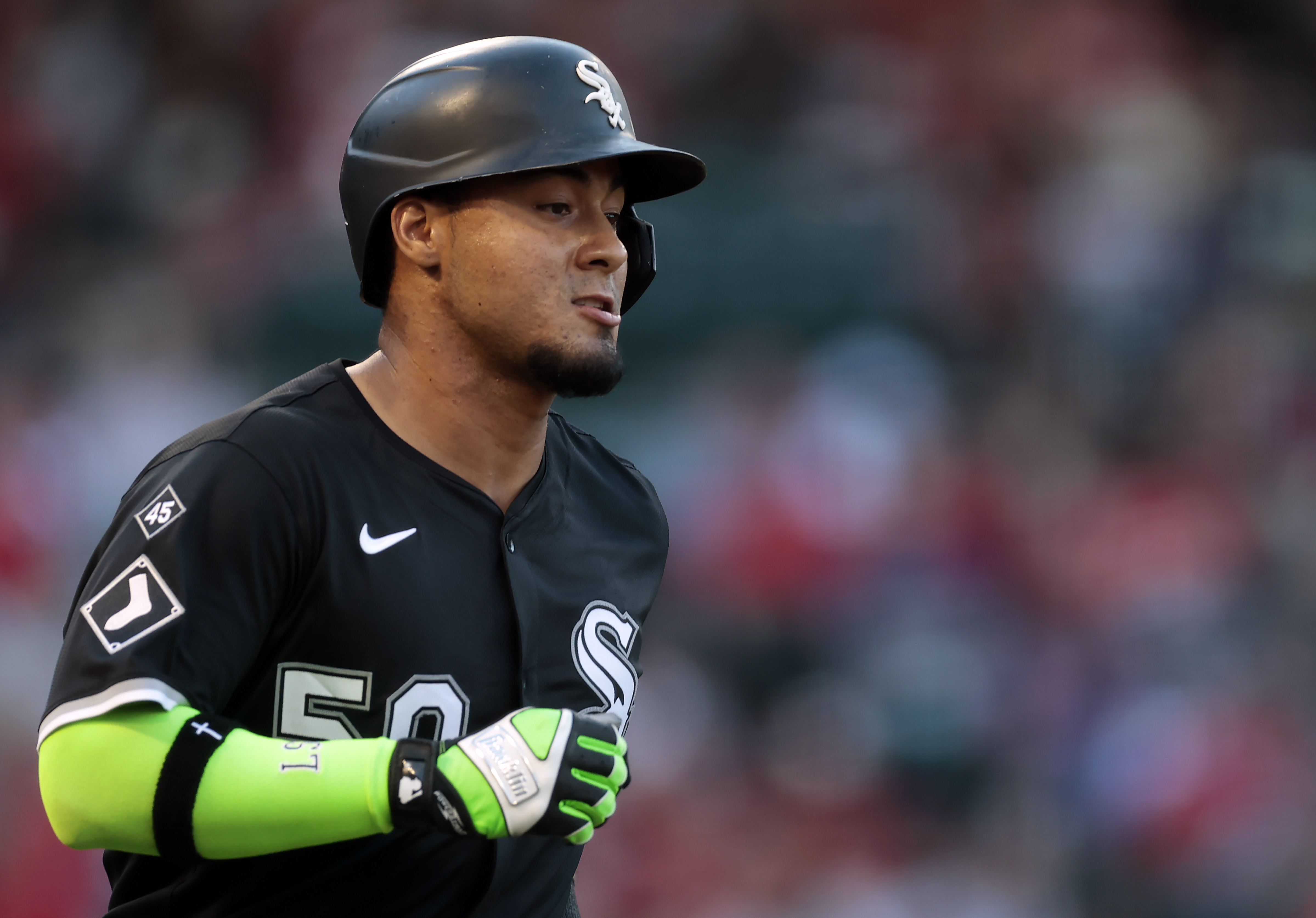 Getty Lenyn Sosa #50 de los Chicago White Sox en el campo contra los Los Angeles Angels en la segunda entrada en el Angel Stadium de Anaheim el 1 de agosto de 2025 en Anaheim, California.