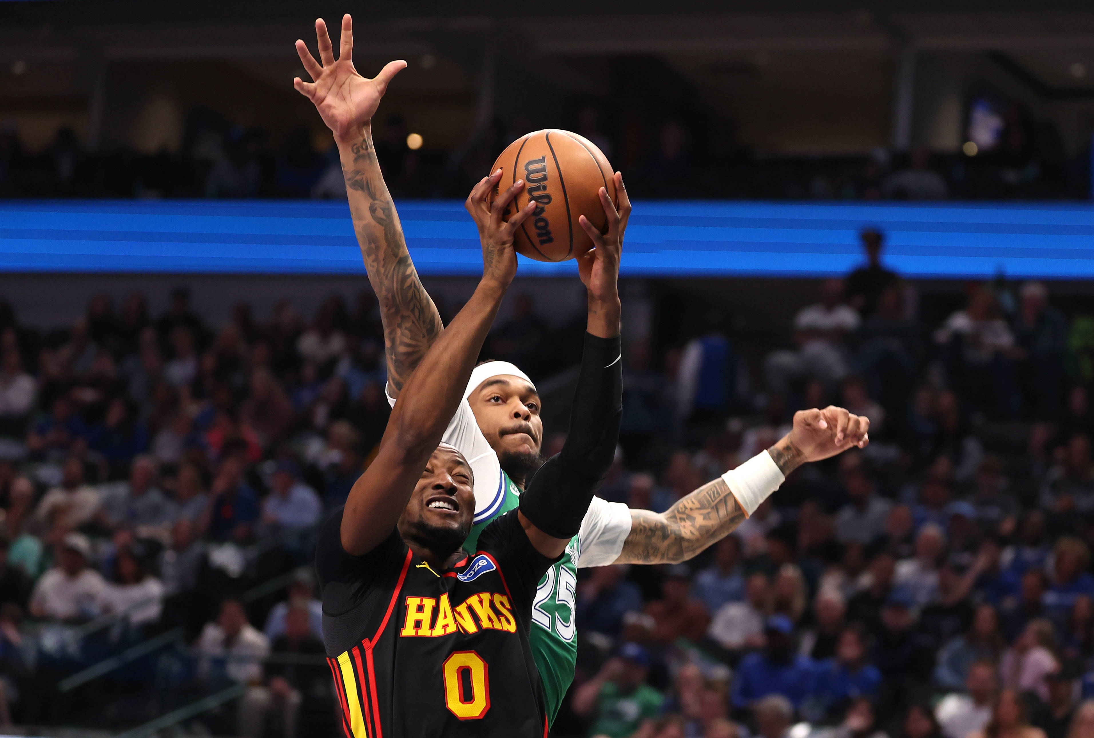 Getty DALLAS, TEXAS – 18 DE MARZO: Jonathan Kuminga #0 de los Atlanta Hawks hace un movimiento hacia la canasta pasando a PJ Washington #25 de los Dallas Mavericks durante el primer cuarto en el American Airlines Center el 18 de marzo de 2026 en Dallas, Texas. (Foto de Sam Hodde/Getty Images)