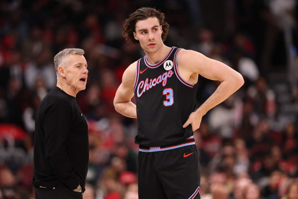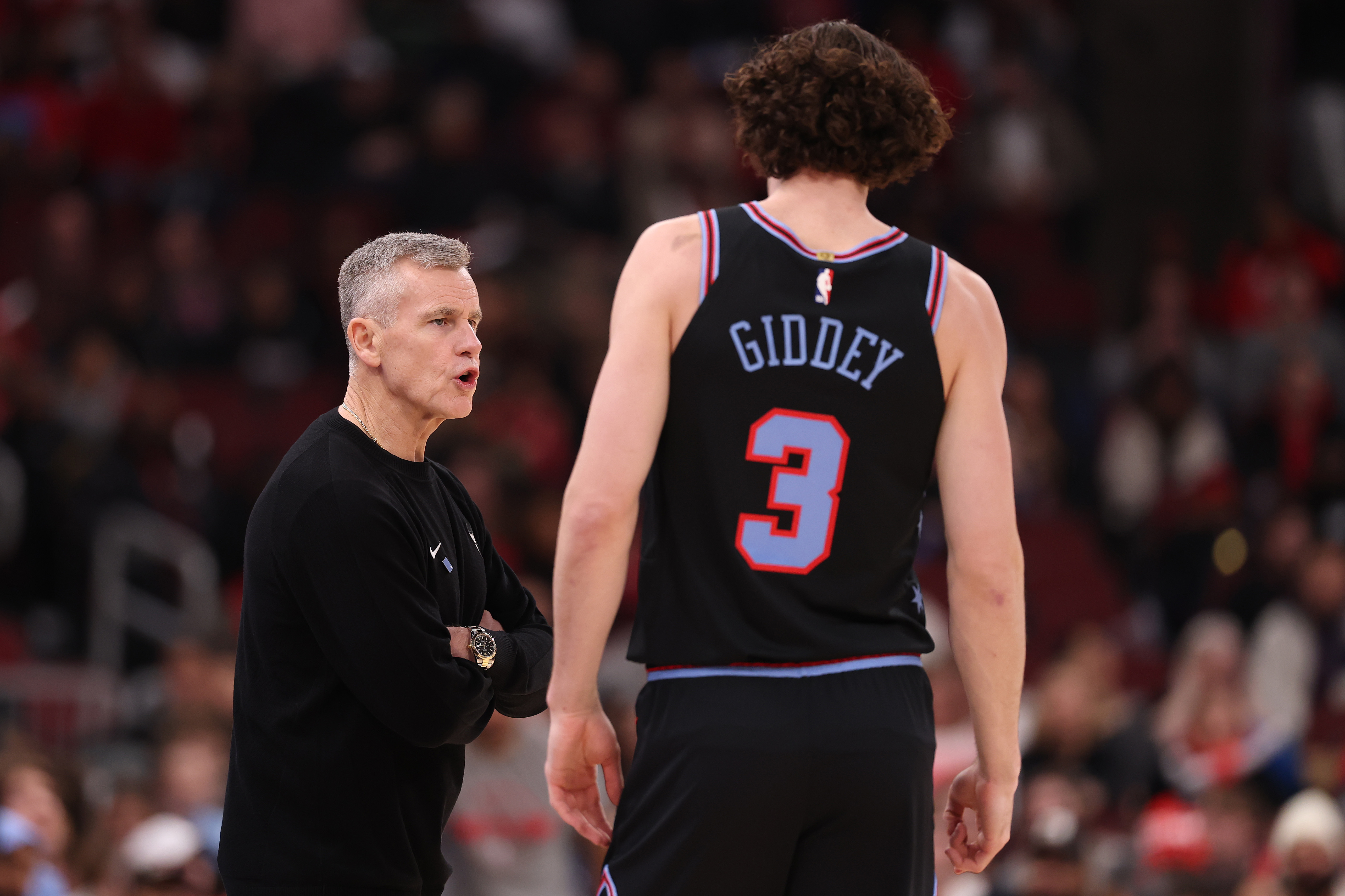 Getty CHICAGO, ILLINOIS – 3 DE DICIEMBRE: El entrenador en jefe Billy Donovan de los Chicago Bulls habla con Josh Giddey #3 contra los Brooklyn Nets durante la primera mitad en el United Center el 3 de diciembre de 2025 en Chicago, Illinois. (Foto de Michael Reaves/Getty Images)