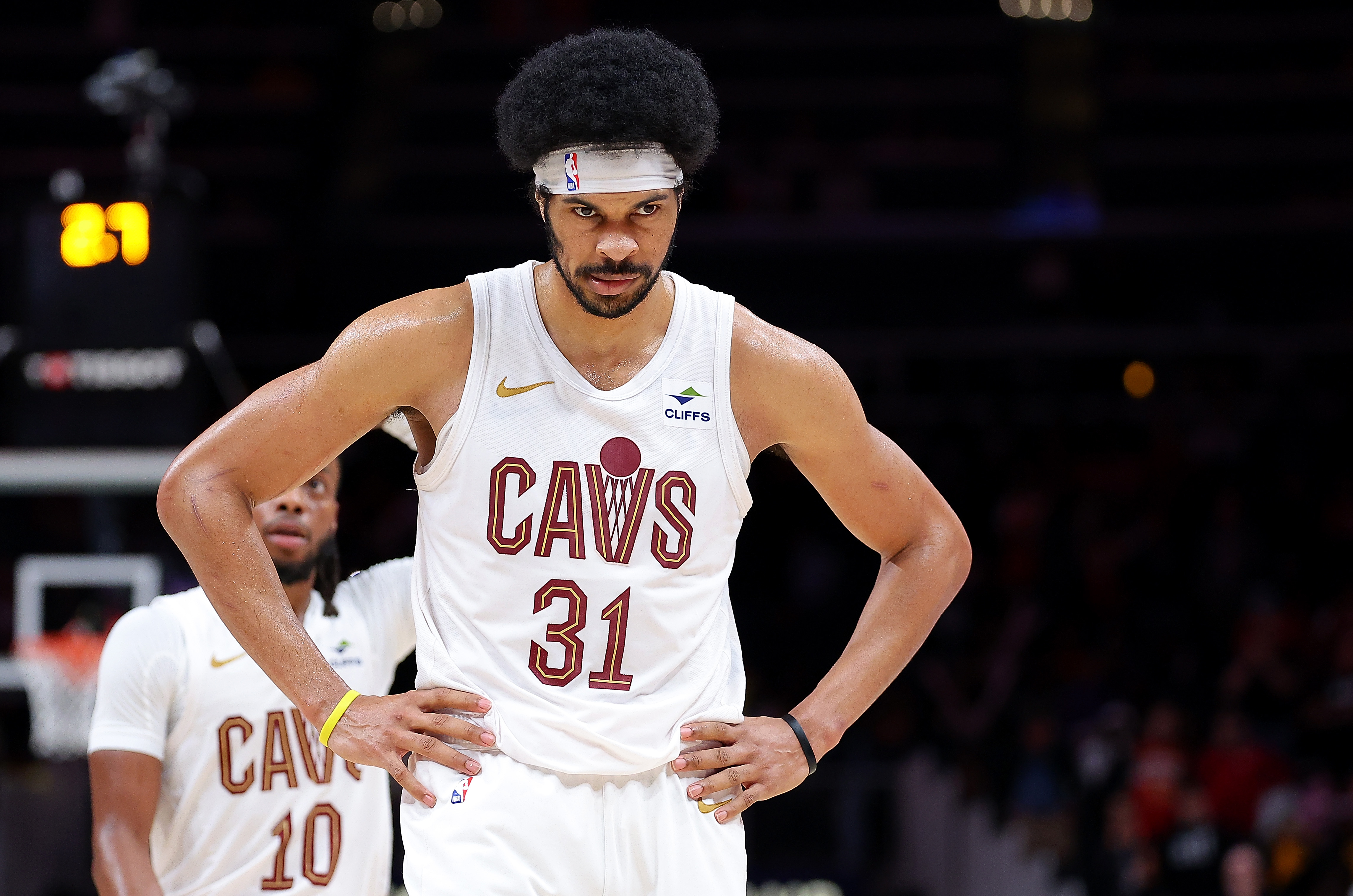 Getty ATLANTA, GEORGIA – 6 DE MARZO: Jarrett Allen #31 de los Cleveland Cavaliers reacciona en los segundos finales de su derrota 112-101 ante los Atlanta Hawks en el State Farm Arena el 6 de marzo de 2024 en Atlanta, Georgia. (Foto de Kevin C. Cox/Getty Images)
