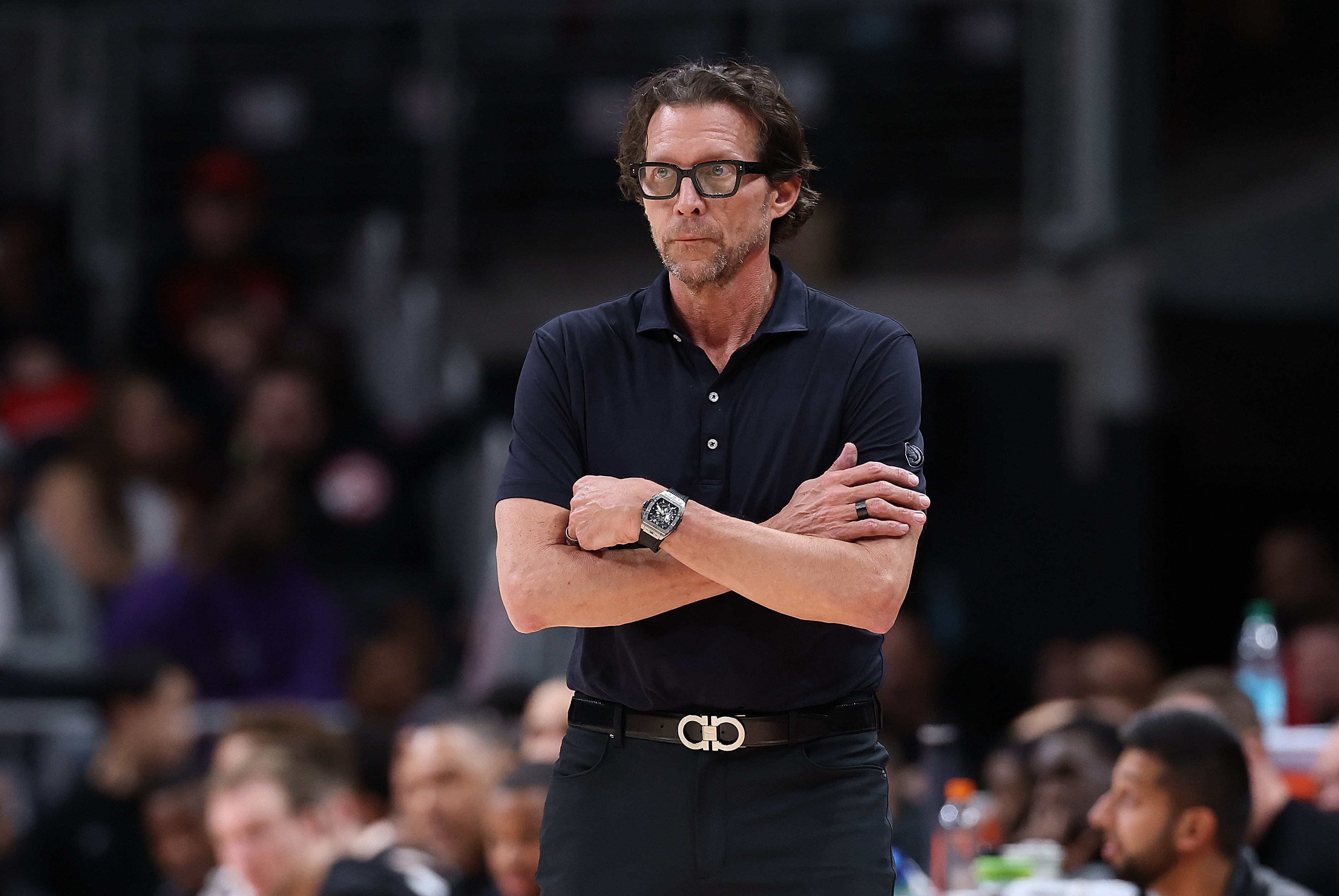 Getty El entrenador en jefe Quin Snyder de los Atlanta Hawks observa el partido contra los Milwaukee Bucks durante el cuarto cuarto en el State Farm Arena el 19 de enero de 2026 en Atlanta, Georgia.