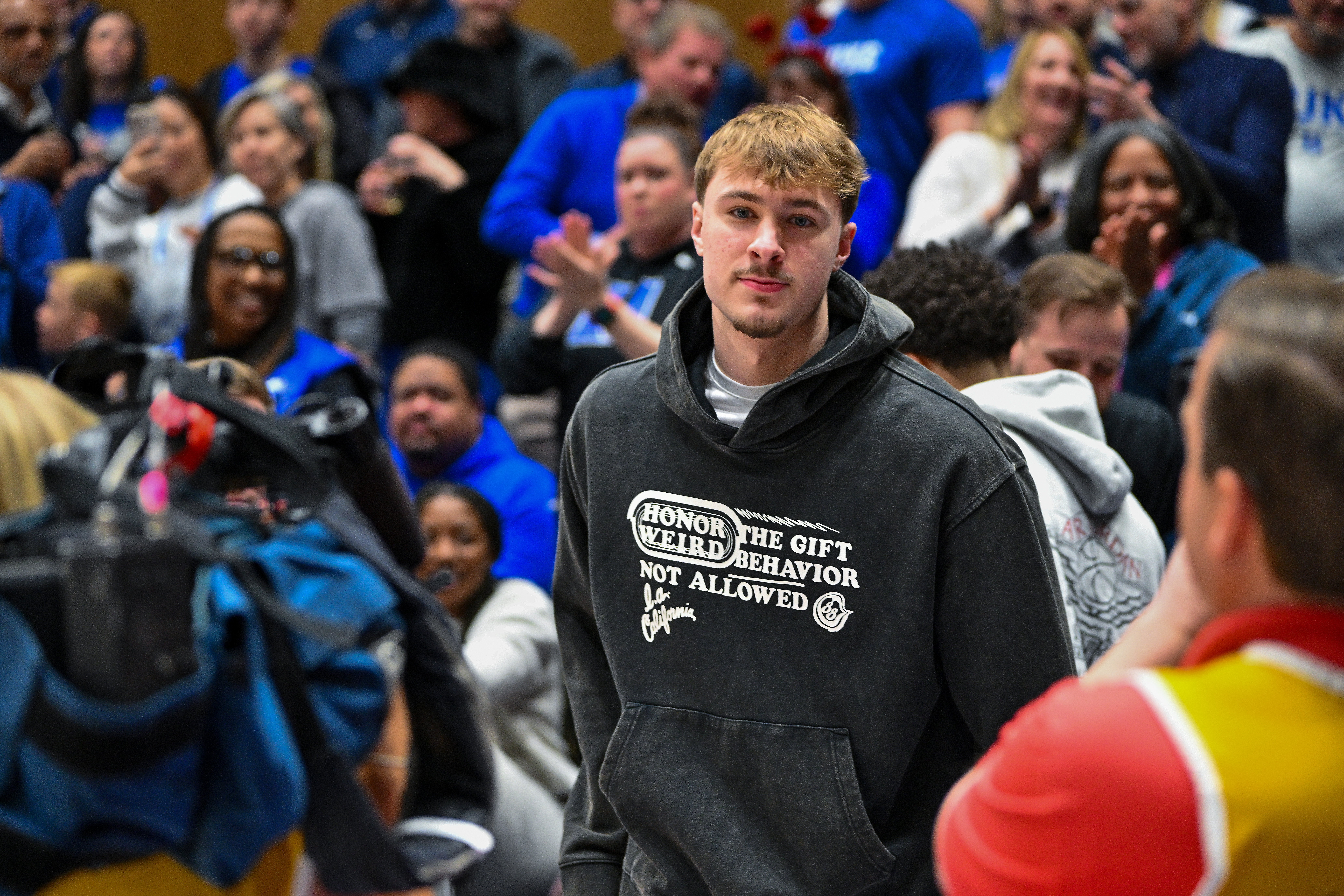 Getty DURHAM, CAROLINA DEL NORTE – 14 DE FEBRERO: El exjugador de Duke Blue Devils, Cooper Flagg, llega para el juego contra los Clemson Tigers en el Cameron Indoor Stadium el 14 de febrero de 2026 en Durham, Carolina del Norte. (Foto de Grant Halverson/Getty Images)