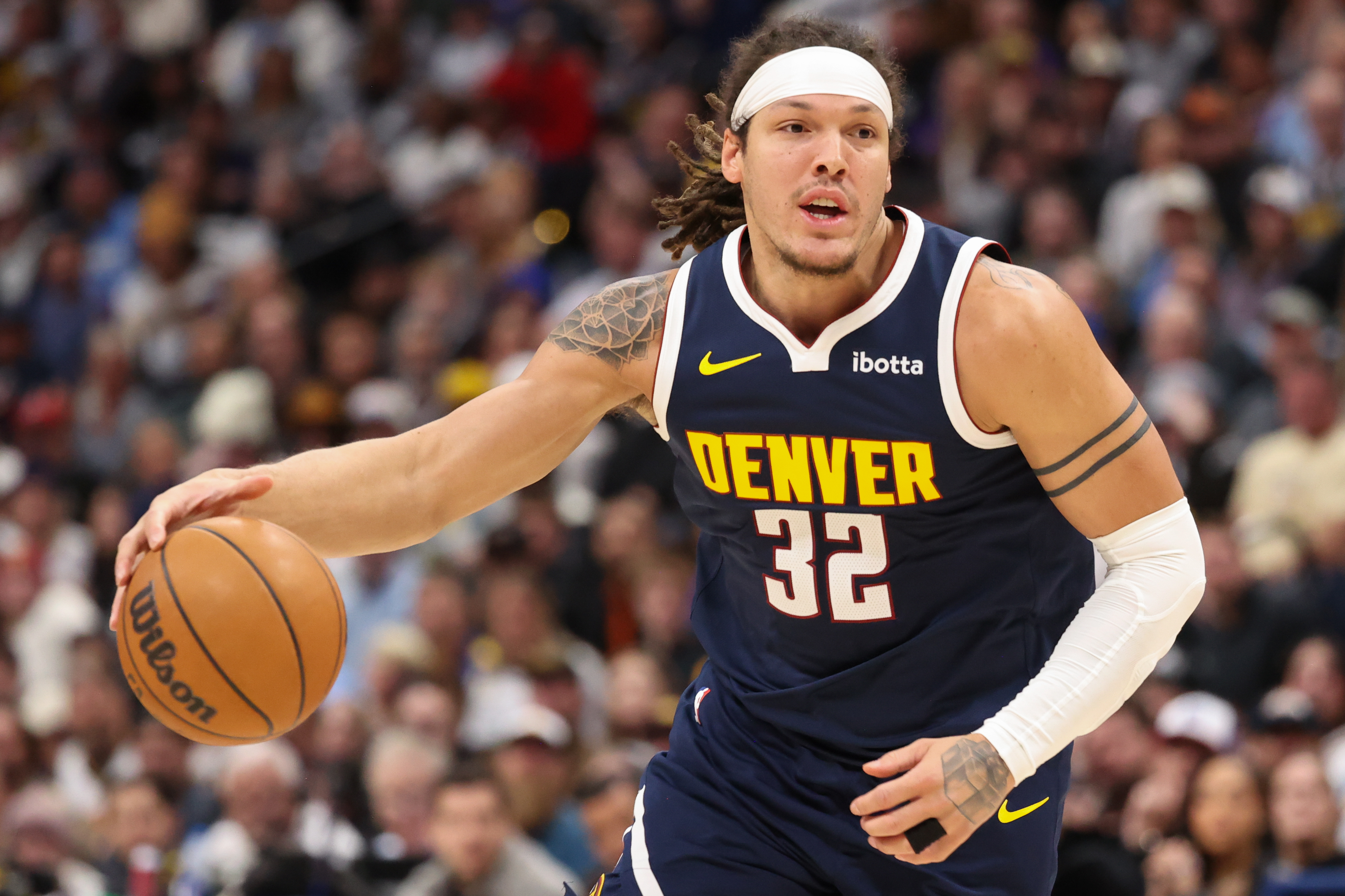 Getty DENVER, COLORADO – 20 DE ENERO: Aaron Gordon #32 de los Denver Nuggets lleva el balón por la cancha contra los Los Angeles Lakers durante el cuarto cuarto en el Ball Arena el 20 de enero de 2026 en Denver, Colorado. (Foto de Tanner Pearson/Clarkson Creative/Getty Images)