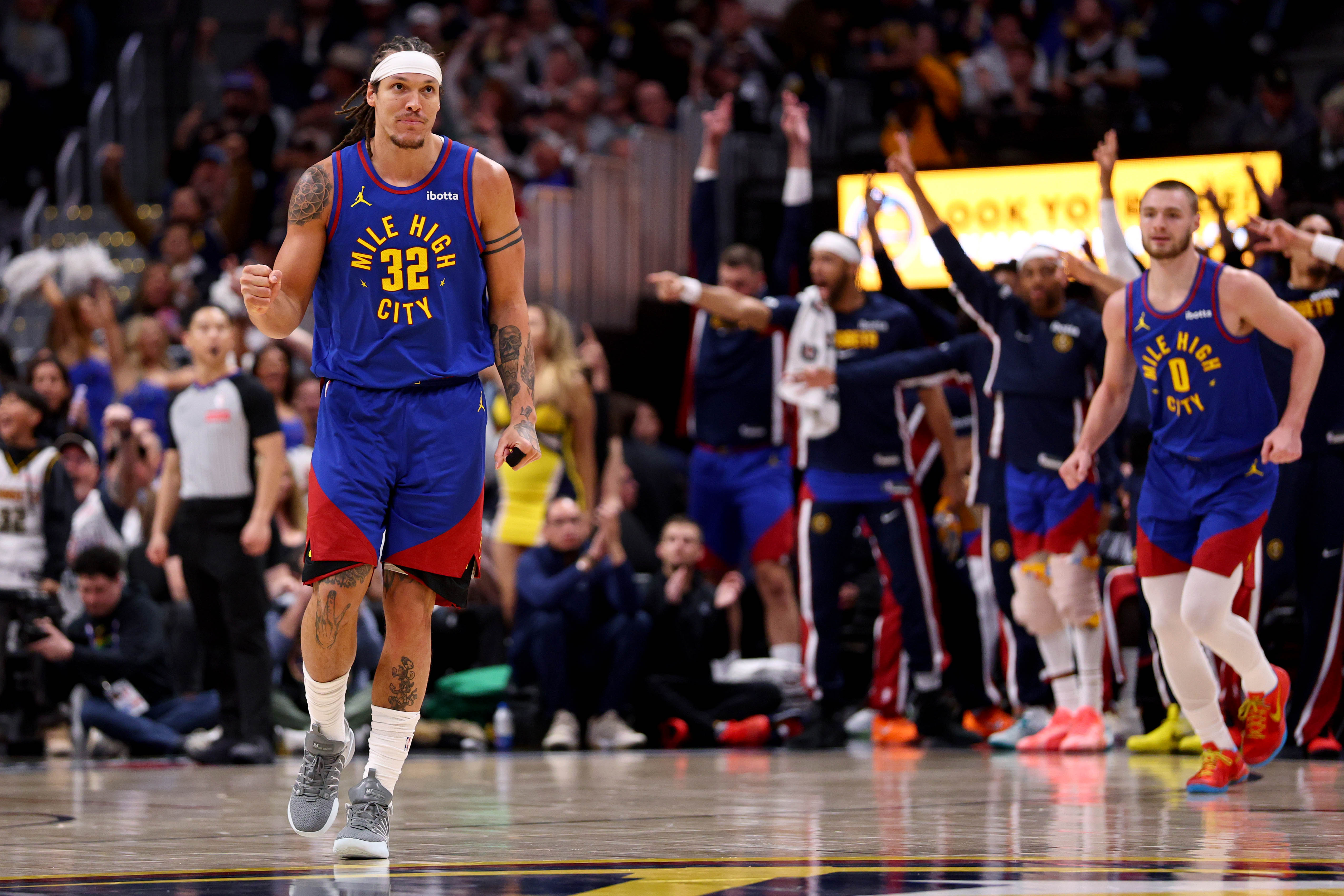 Getty DENVER, COLORADO – 11 DE MARZO: Aaron Gordon #32 de los Denver Nuggets celebra después de una asistencia contra los Houston Rockets en el Ball Arena el 11 de marzo de 2026 en Denver, Colorado.(Foto de Jamie Schwaberow/Getty Images)
