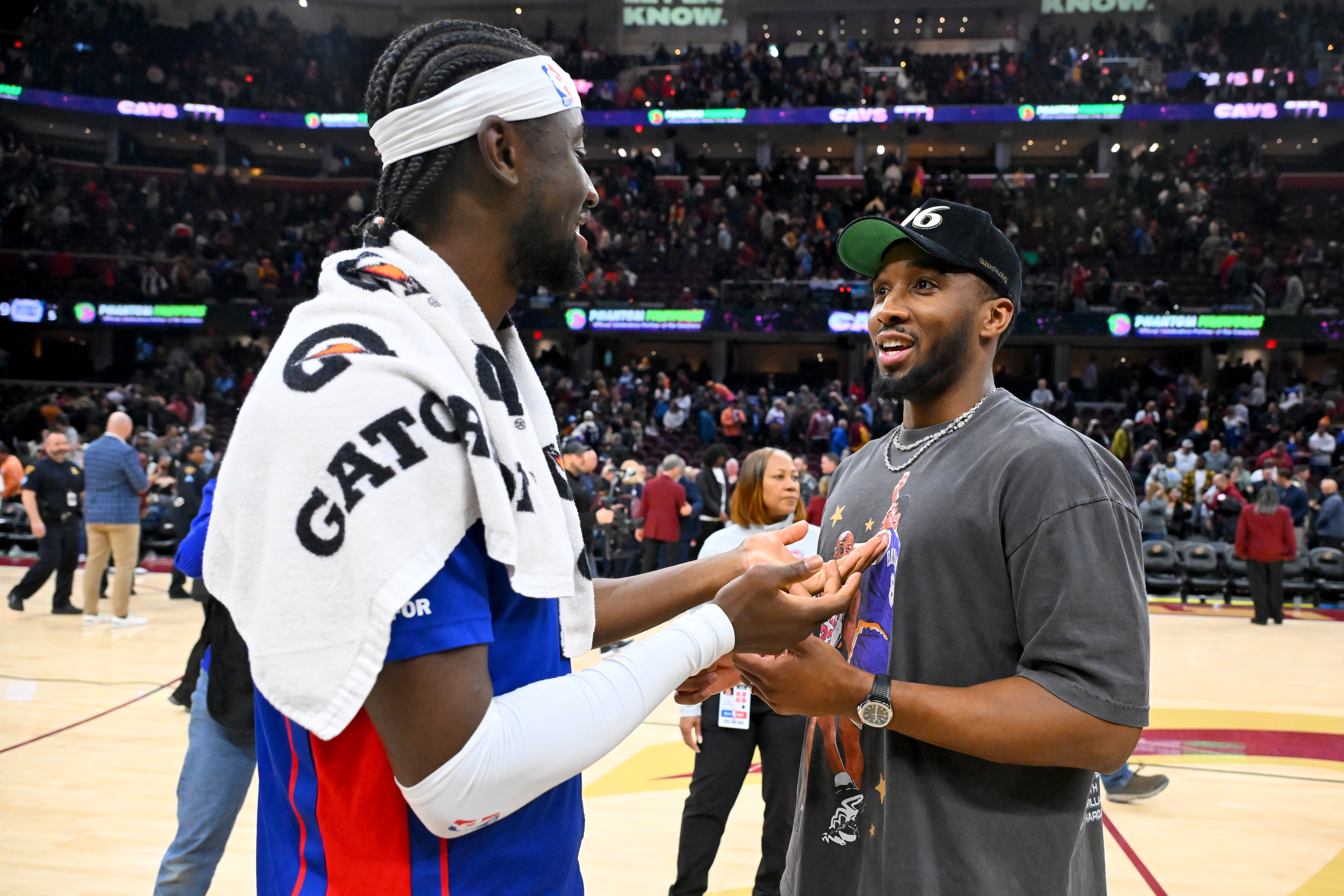 Getty CLEVELAND, OHIO – 3 DE MARZO: Caris LeVert, número 8 de los Detroit Pistons, habla con Donovan Mitchell número 45 de los Cleveland Cavaliers, después del partido en el Rocket Arena el 3 de marzo de 2026 en Cleveland, Ohio. Los Cavaliers derrotaron a los Pistons 113-109. (Foto de Jason Miller/Getty Images)