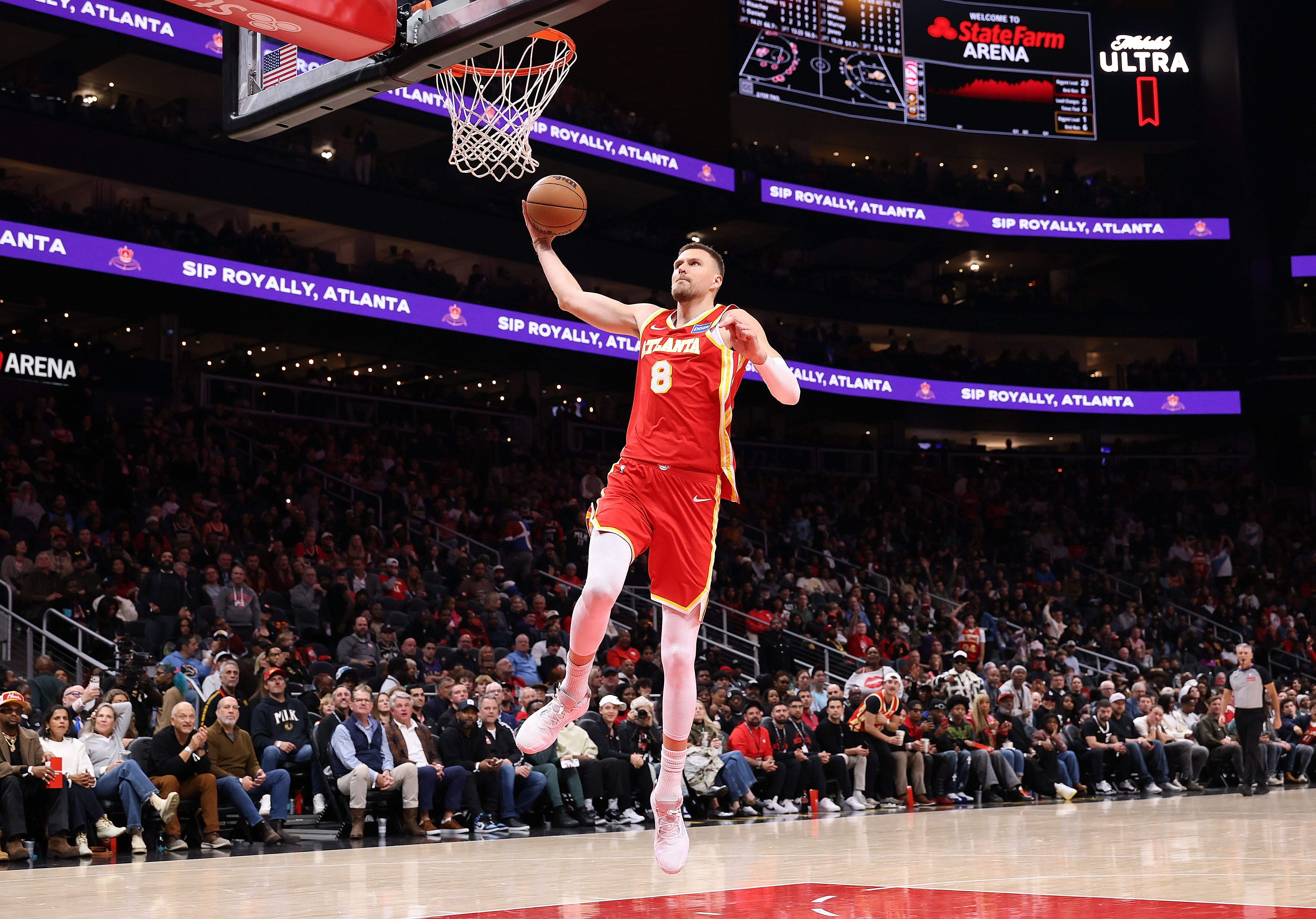 Getty ATLANTA, GEORGIA – 5 DE DICIEMBRE: Kristaps Porzingis #8 de los Atlanta Hawks realiza un mate contra los Denver Nuggets durante el segundo cuarto en el State Farm Arena el 5 de diciembre de 2025 en Atlanta, Georgia. (Foto de Kevin C. Cox/Getty Images)
