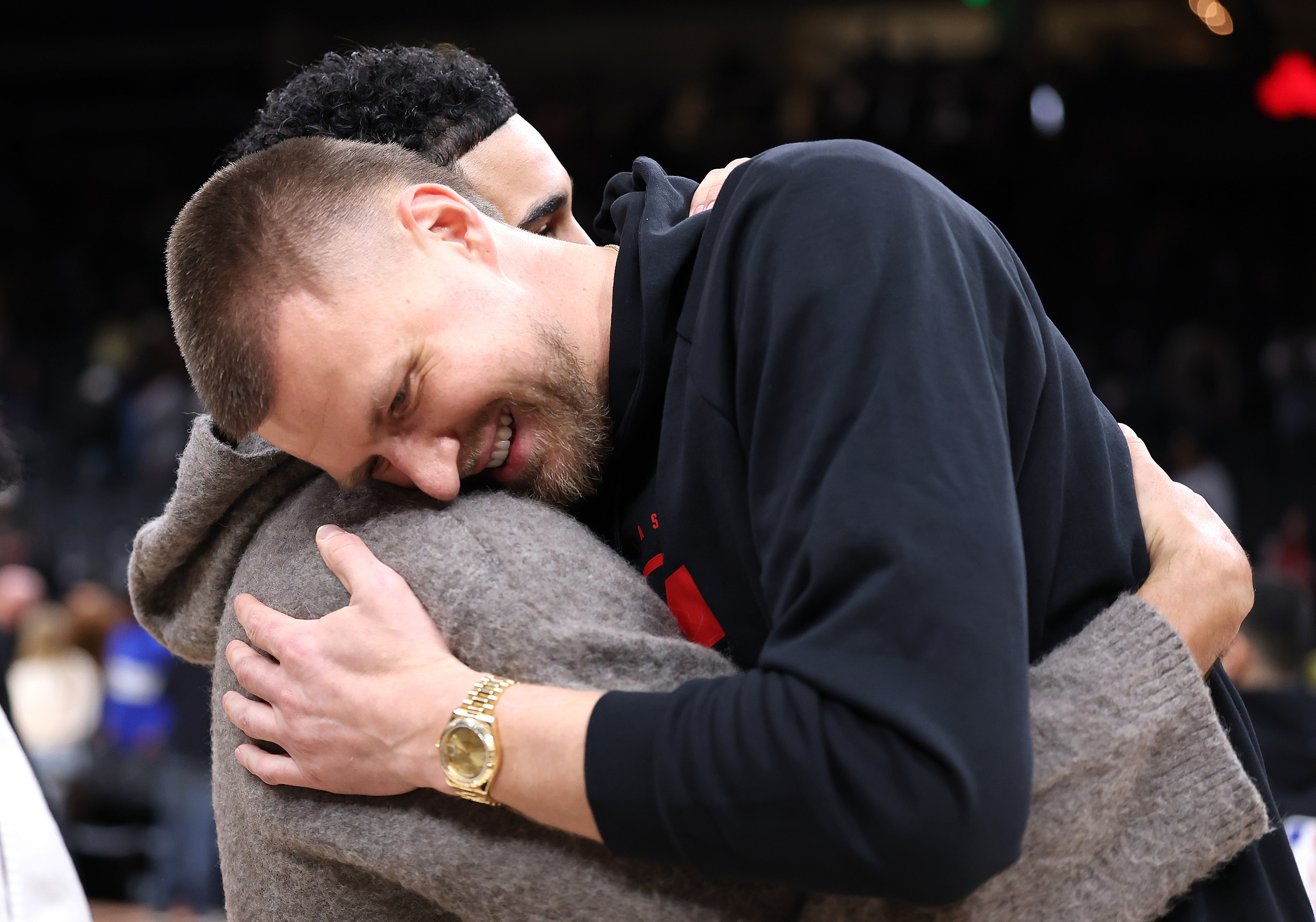 Getty ATLANTA, GEORGIA – 17 DE ENERO: Kristaps Porzingis #8 de los Atlanta Hawks abraza a Jayson Tatum #0 de los Boston Celtics después de su derrota por 132-106 en el State Farm Arena el 17 de enero de 2026 en Atlanta, Georgia. (Foto de Kevin C. Cox/Getty Images)