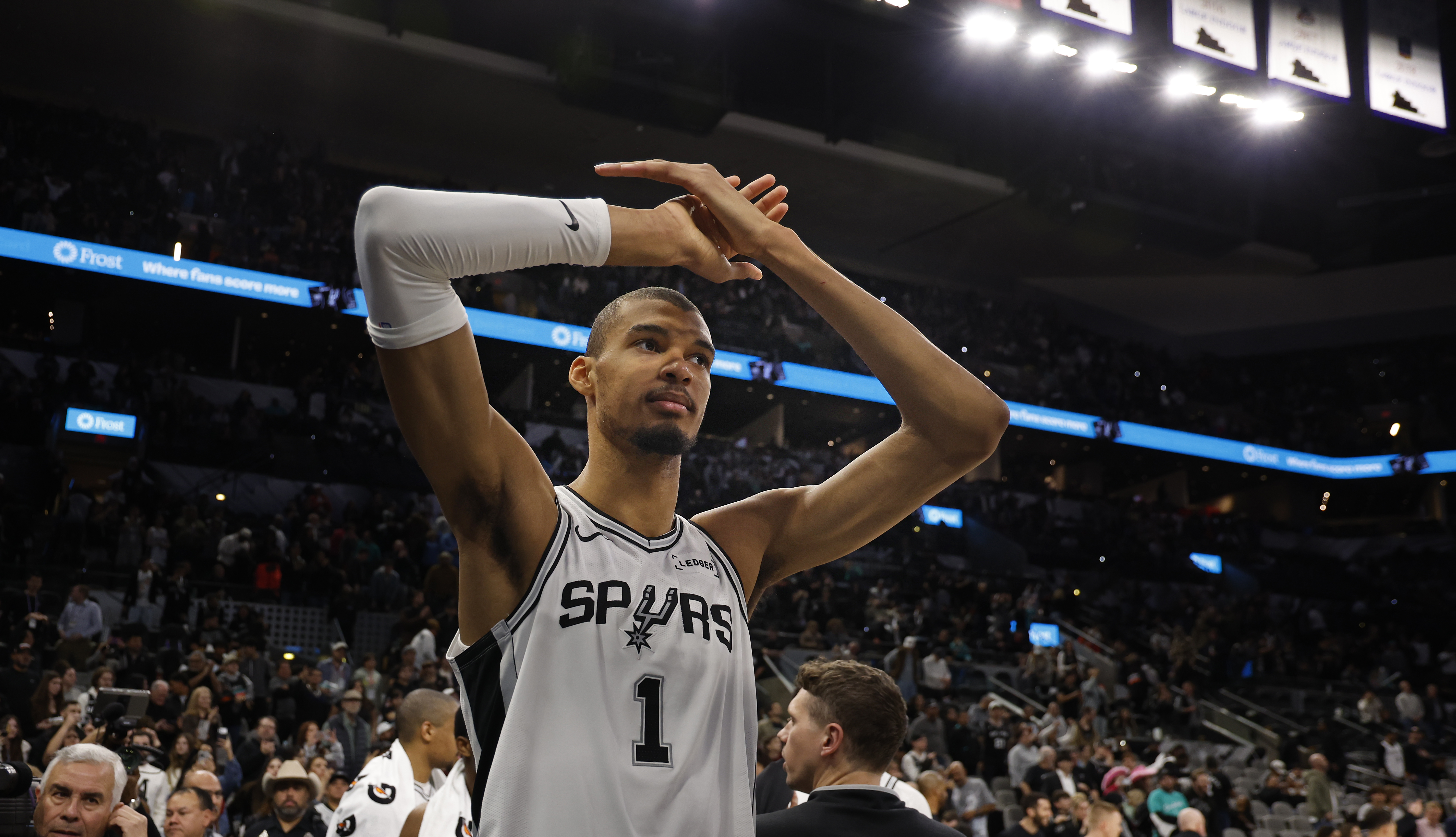 Getty Victor Wembanyama #1 de los San Antonio Spurs celebra una victoria 112-103 contra el Orlando Magic en el Frost Bank Center el 1 de febrero de 2026 en San Antonio, Texas.