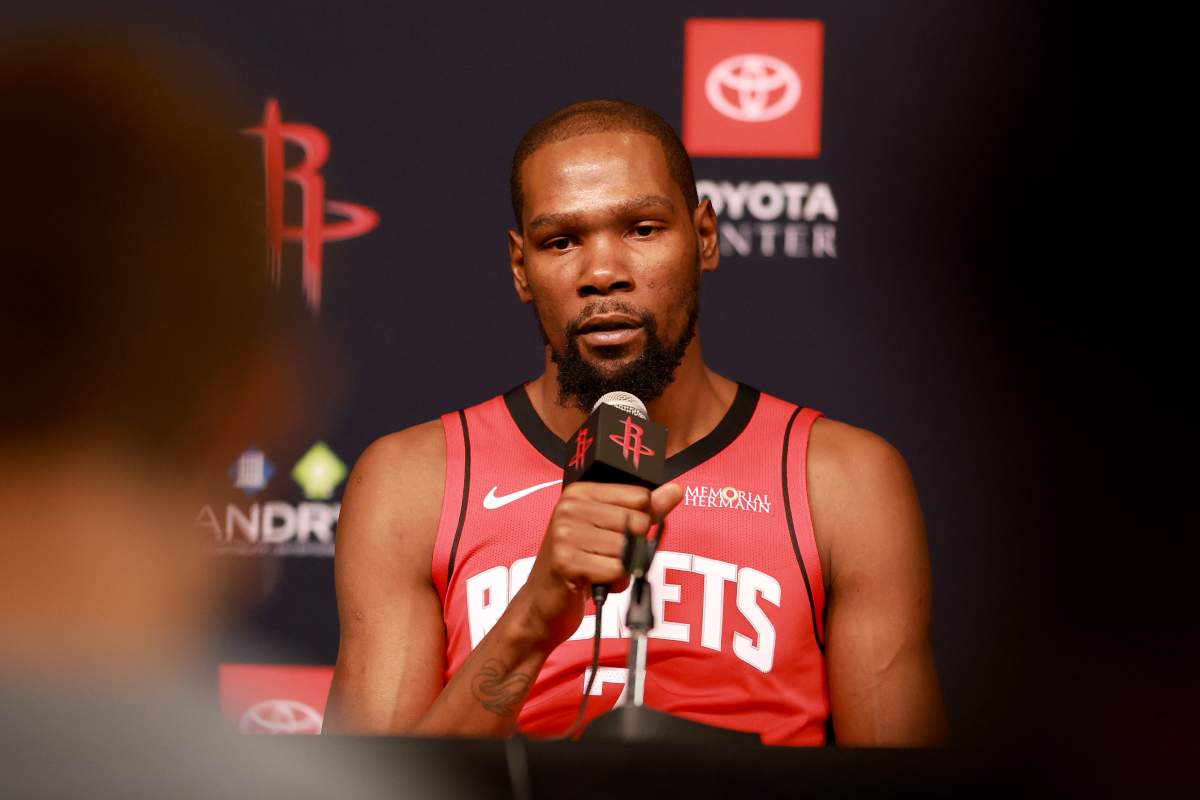 Getty Kevin Durant #7 de los Houston Rockets habla con los medios después del partido contra los San Antonio Spurs en el Toyota Center el 20 de enero de 2026 en Houston, Texas.