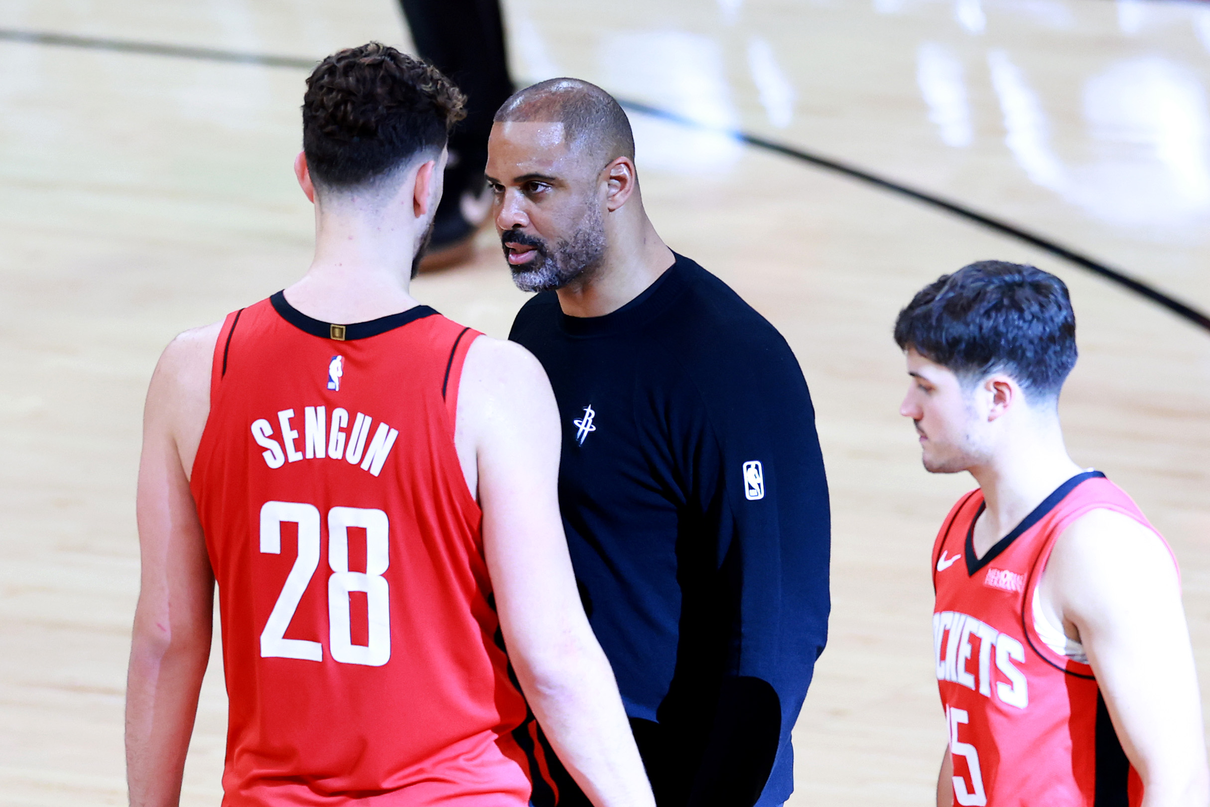 Getty HOUSTON, TEXAS – 24 DE OCTUBRE: El entrenador en jefe Ime Udoka de los Houston Rockets habla con Alperen Sengun #28 después del juego contra los Detroit Pistons en el Toyota Center el 24 de octubre de 2025 en Houston, Texas. (Foto de Kenneth Richmond/Getty Images)