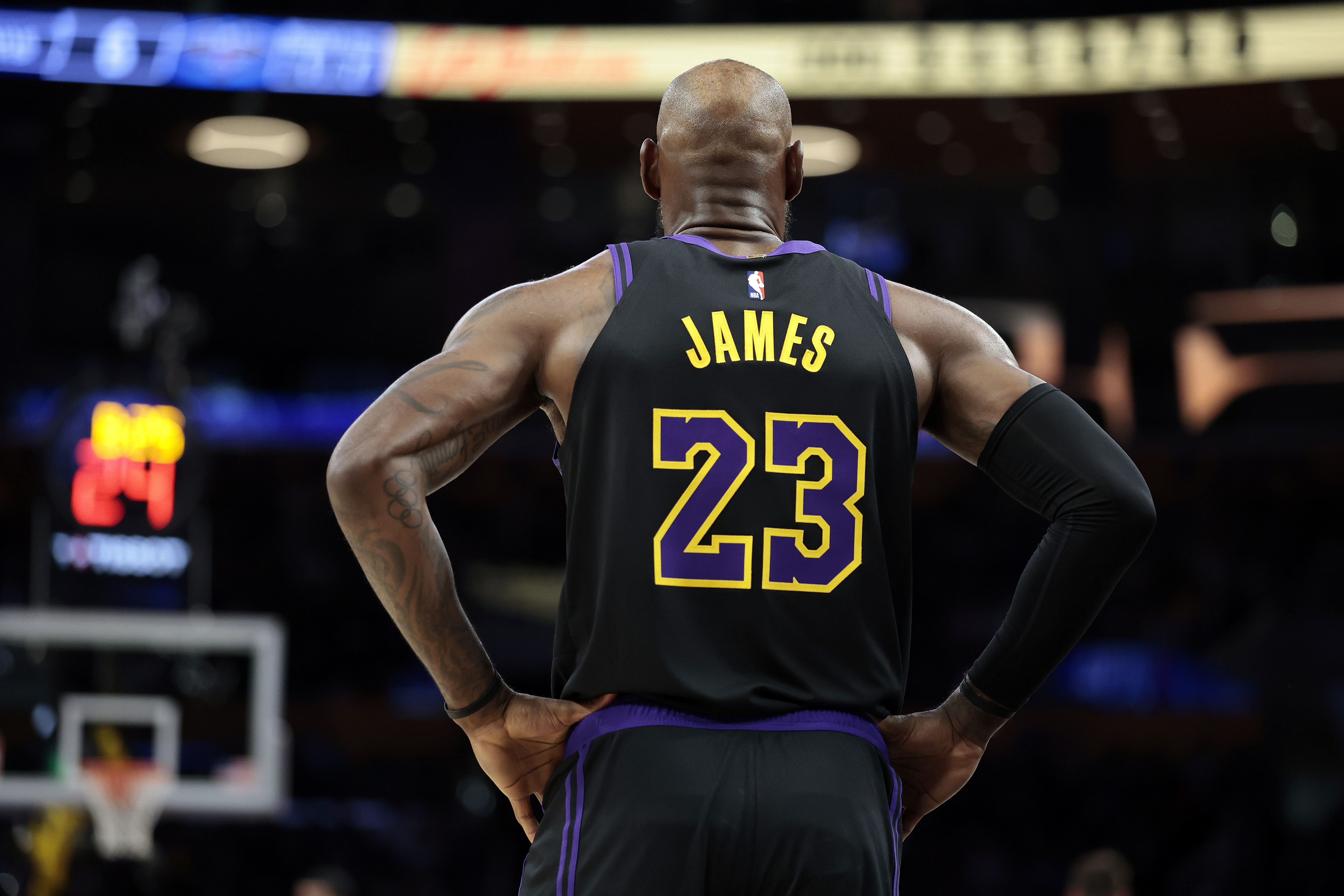 Getty LOS ÁNGELES, CALIFORNIA – 3 DE MARZO: LeBron James #23 de Los Angeles Lakers en la cancha contra los New Orleans Pelicans en la primera mitad en el Crypto.com Arena el 3 de marzo de 2026 en Los Ángeles, California. (Foto de Ronald Martinez/Getty Images)