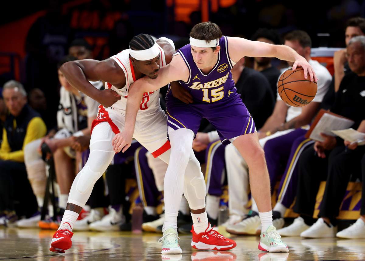 Getty Austin Reaves #15 de Los Angeles Lakers entra al juego durante el primer cuarto contra los Houston Rockets en el Juego Cinco de la Primera Ronda de los Playoffs de la Conferencia Oeste de la NBA en Crypto.com Arena el 29 de abril de 2026 en Los Ángeles, California.