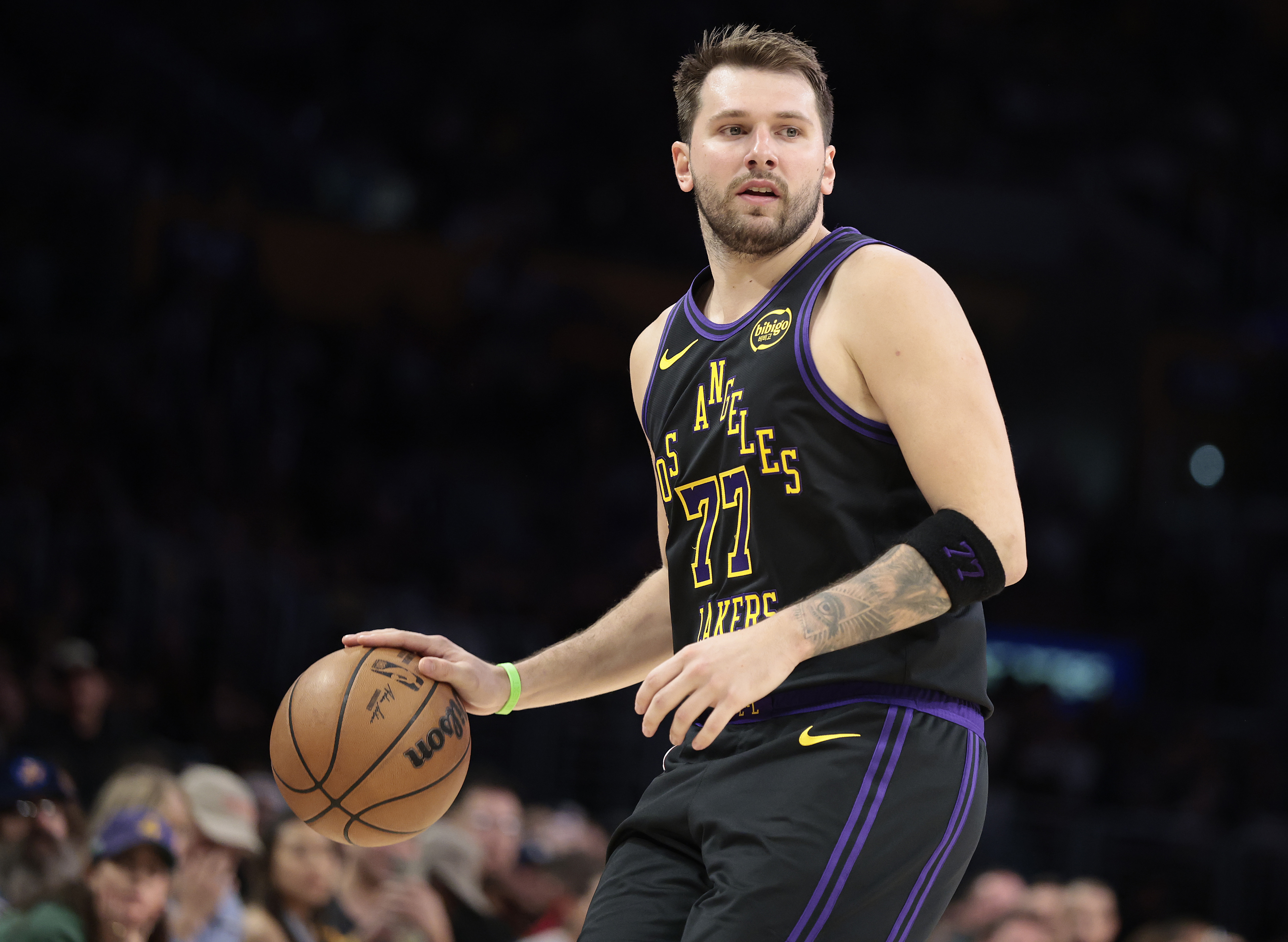 Getty LOS ÁNGELES, CALIFORNIA – 3 DE MARZO: Luka Doncic #77 de Los Angeles Lakers controla el balón contra los New Orleans Pelicans en la segunda mitad en el Crypto.com Arena el 3 de marzo de 2026 en Los Ángeles, California. (Foto de Ronald Martinez/Getty Images)