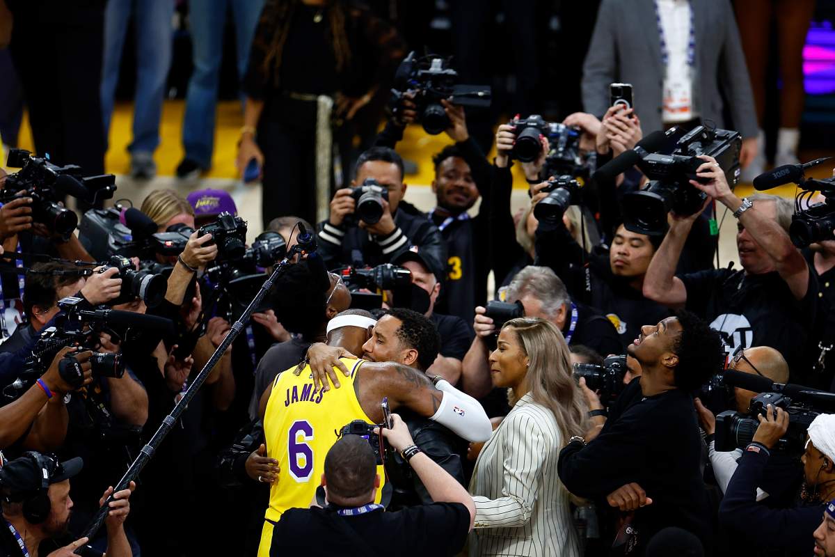 Getty LOS ÁNGELES, CA – 12 DE FEBRERO DE 2026: El delantero de Los Angeles Lakers, LeBron James (23), y su hijo, el escolta de Los Angeles Lakers Bronny James (9), durante los calentamientos antes del partido contra los Dallas Mavericks en el Crypto.com Arena el 12 de febrero de 2026 en Los Ángeles, California.(Gina Ferazzi / Los Angeles Times vía Getty Images)
