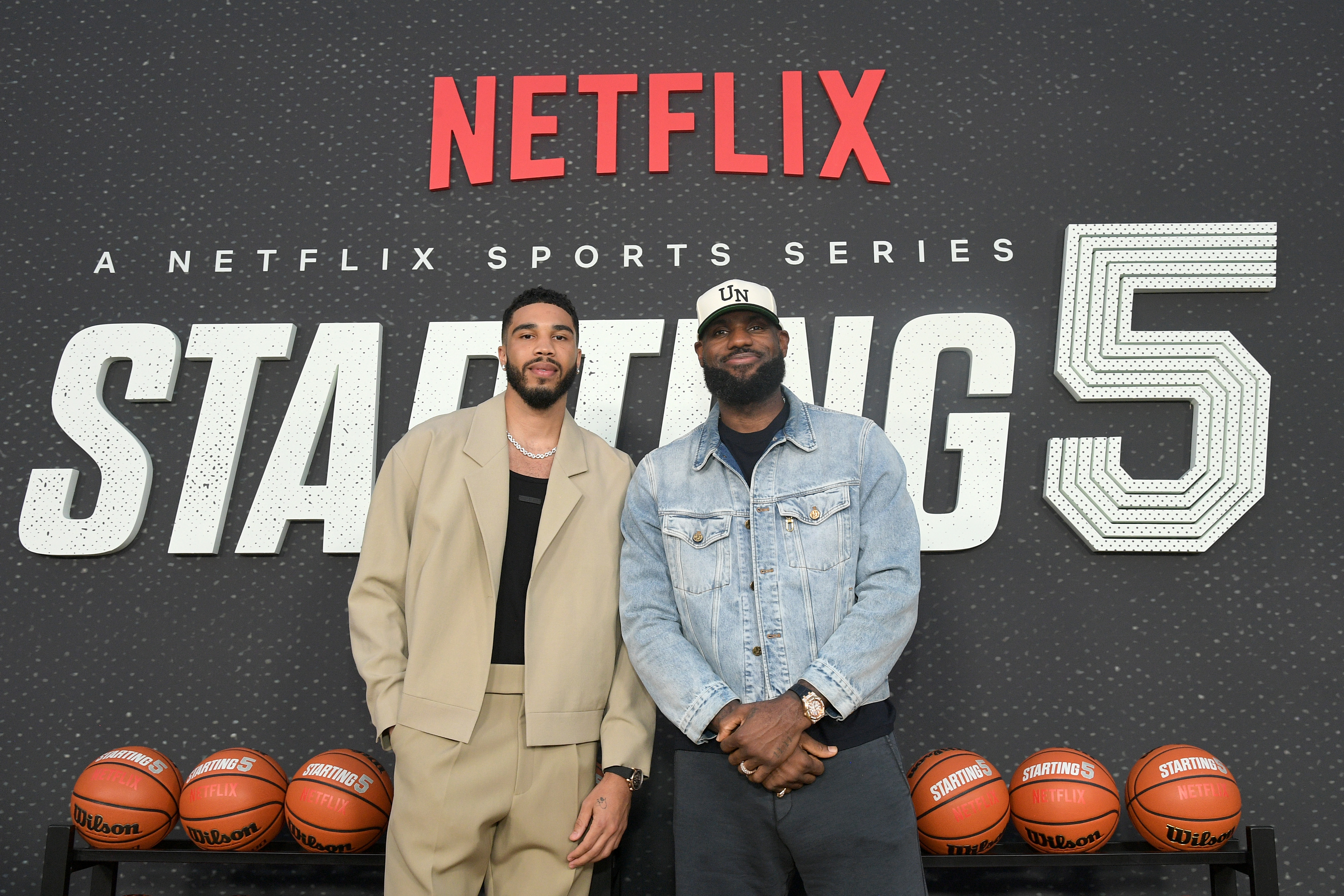 Getty LOS ÁNGELES, CALIFORNIA – 23 DE SEPTIEMBRE: (ID) Jayson Tatum y LeBron James asisten al estreno de Starting 5 LA en The Egyptian Theatre Hollywood el 23 de septiembre de 2024 en Los Ángeles, California. (Foto de Charley Gallay/Getty Images para Netflix)