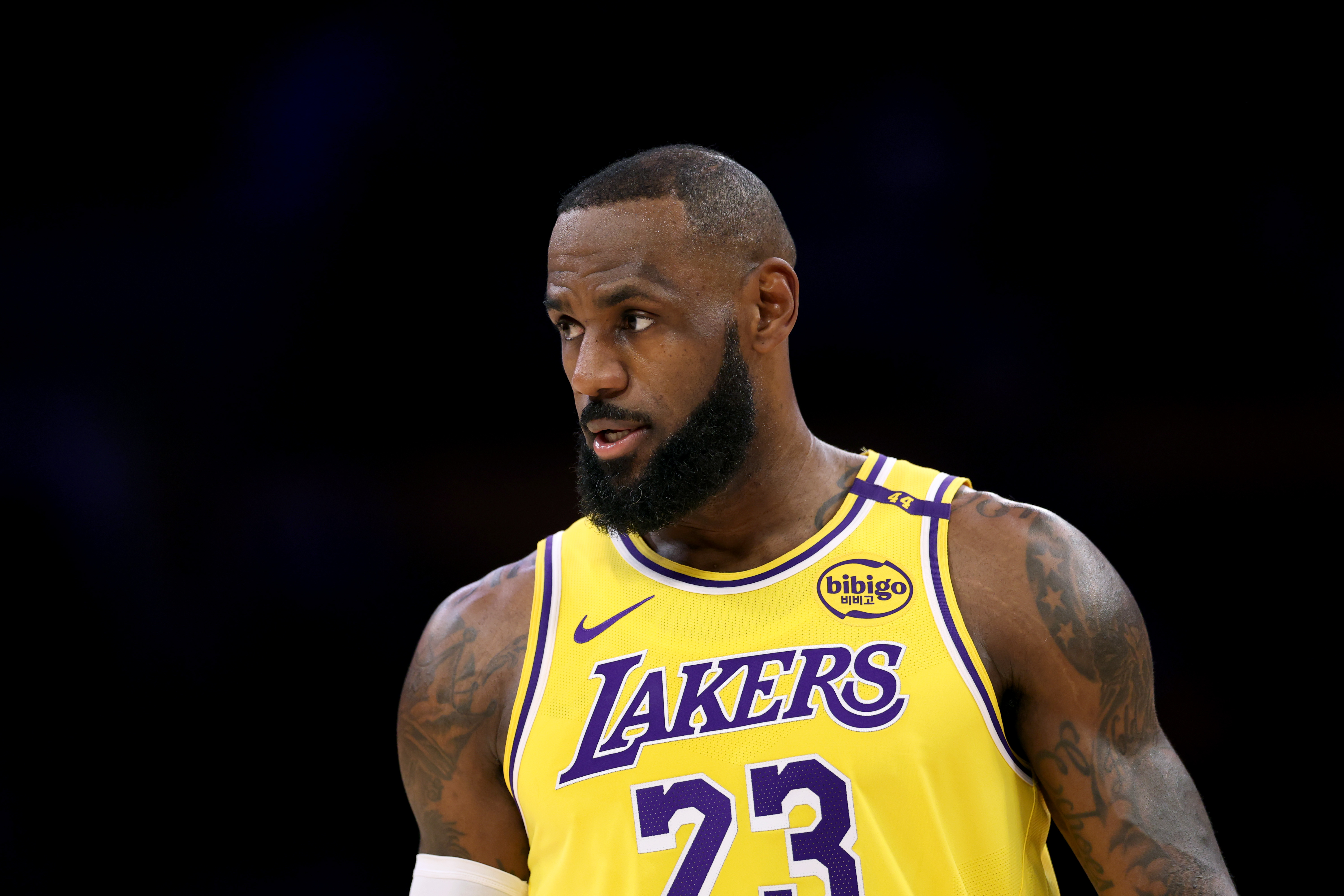 Getty LOS ÁNGELES, CALIFORNIA – 22 DE FEBRERO: LeBron James #23 de Los Angeles Lakers observa durante la primera mitad de su partido contra los Boston Celtics en el Crypto.com Arena el 22 de febrero de 2026 en Los Ángeles, California. (Foto de Luiza Moraes/Getty Images)