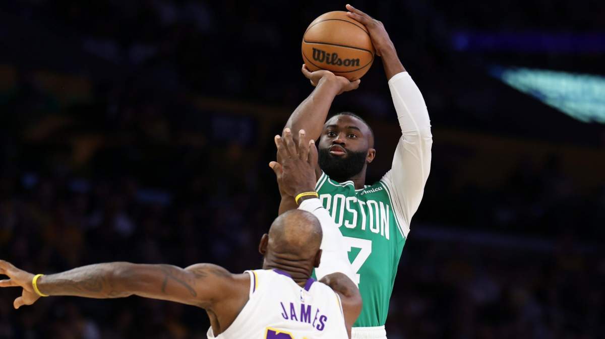 Los Boston Celtics llegaron a Los Ángeles y dieron una declaración. Después de una contundente victoria por 111-89 sobre los Lakers el domingo por la noche, LeBron James se aseguró de que la atención se mantuviera en Jaylen Brown .