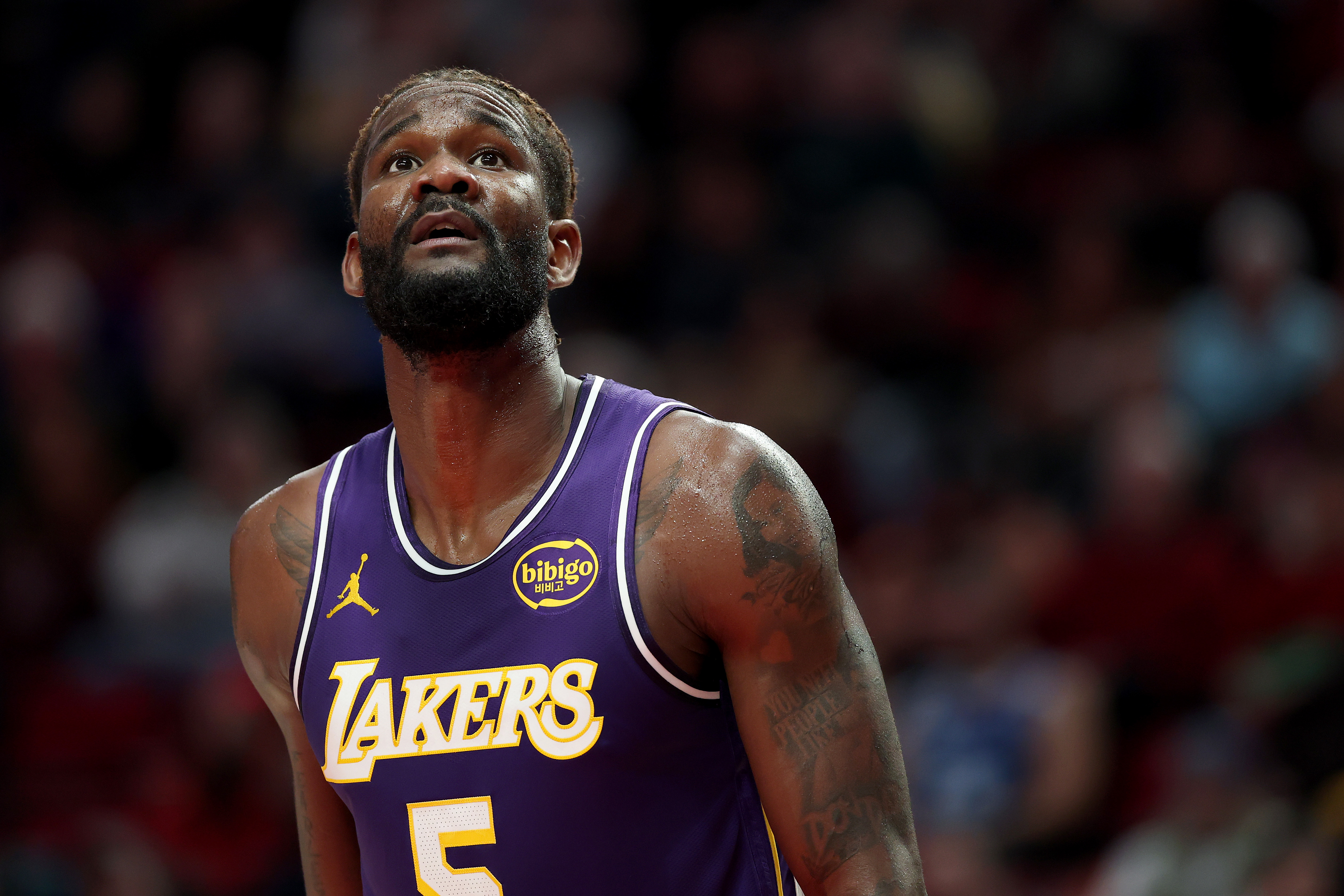 Getty PORTLAND, OREGÓN – 3 DE NOVIEMBRE: Deandre Ayton #5 de Los Angeles Lakers observa contra los Portland Trail Blazers durante la segunda mitad en el Moda Center el 3 de noviembre de 2025 en Portland, Oregón. (Foto de Steph Chambers/Getty Images)