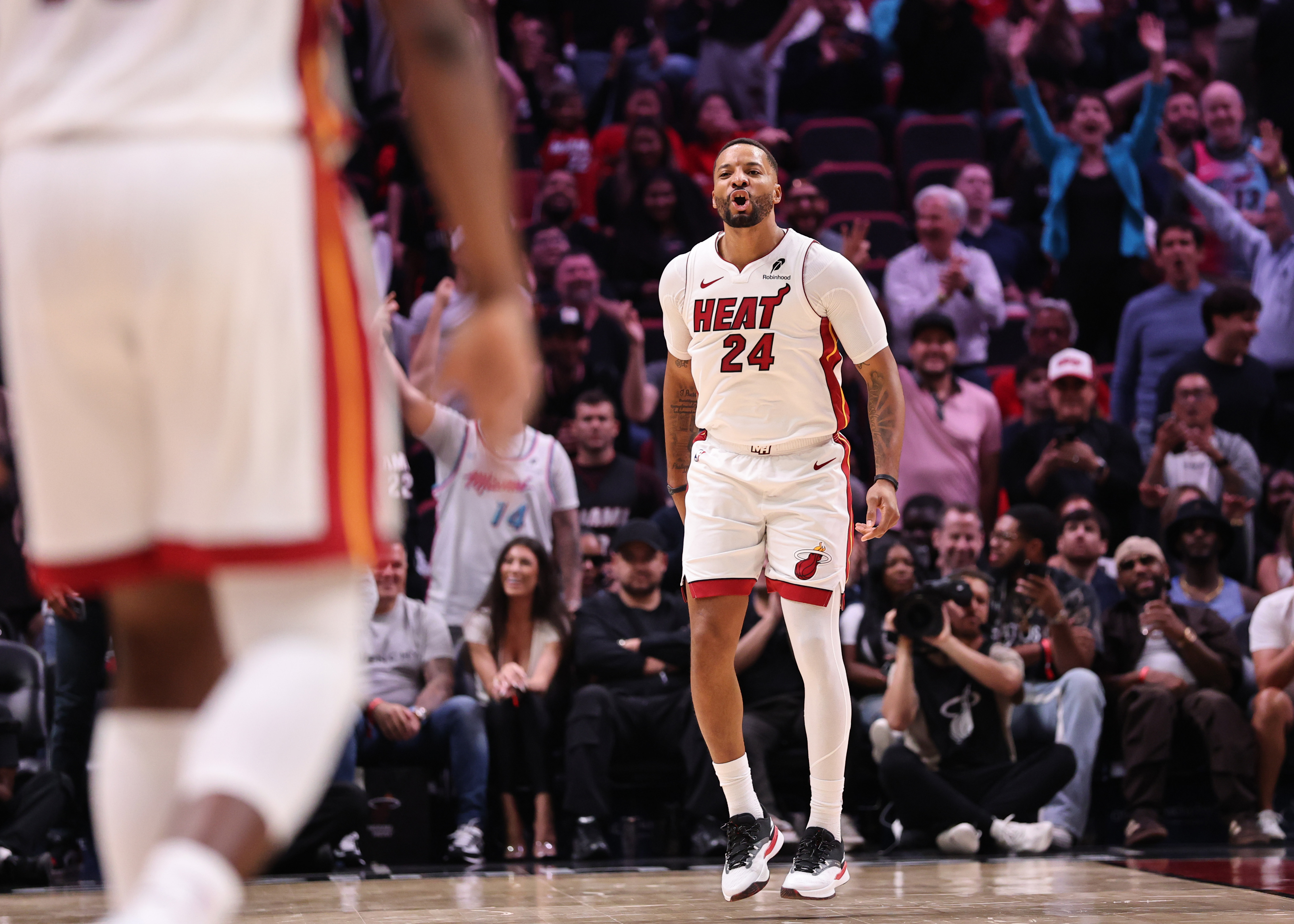 Getty MIAMI, FLORIDA – 1 DE DICIEMBRE: Norman Powell #24 del Miami Heat reacciona a una canasta de tres puntos contra los LA Clippers en el Kaseya Center el 1 de diciembre de 2025 en Miami, Florida. (Foto de Carmen Mandato/Getty Images)