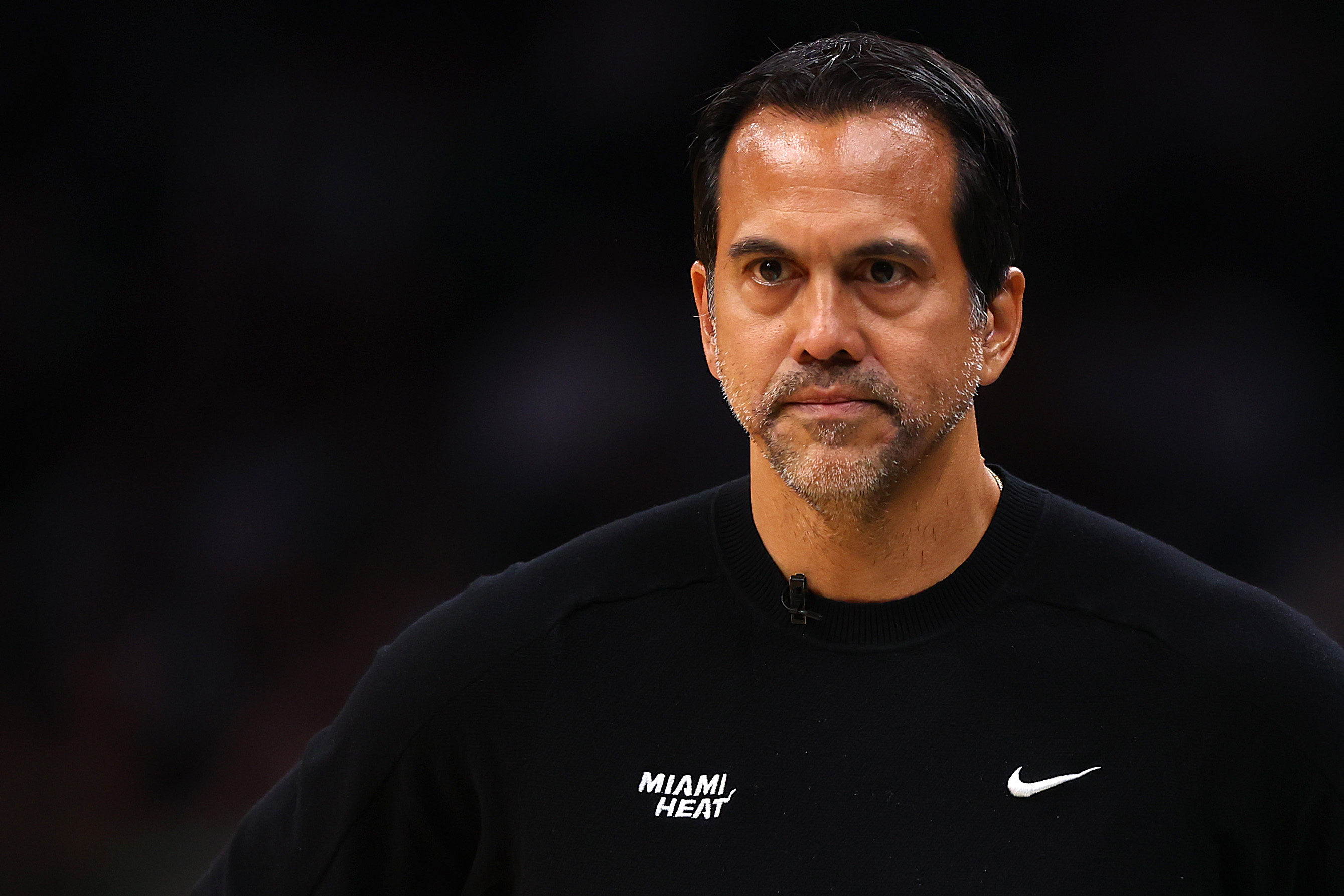 Getty El entrenador del Miami Heat, Erik Spoelstra, observa durante el tercer cuarto del quinto partido de la primera ronda de los playoffs de la Conferencia Este en el TD Garden el 1 de mayo de 2024 en Boston, Massachusetts.