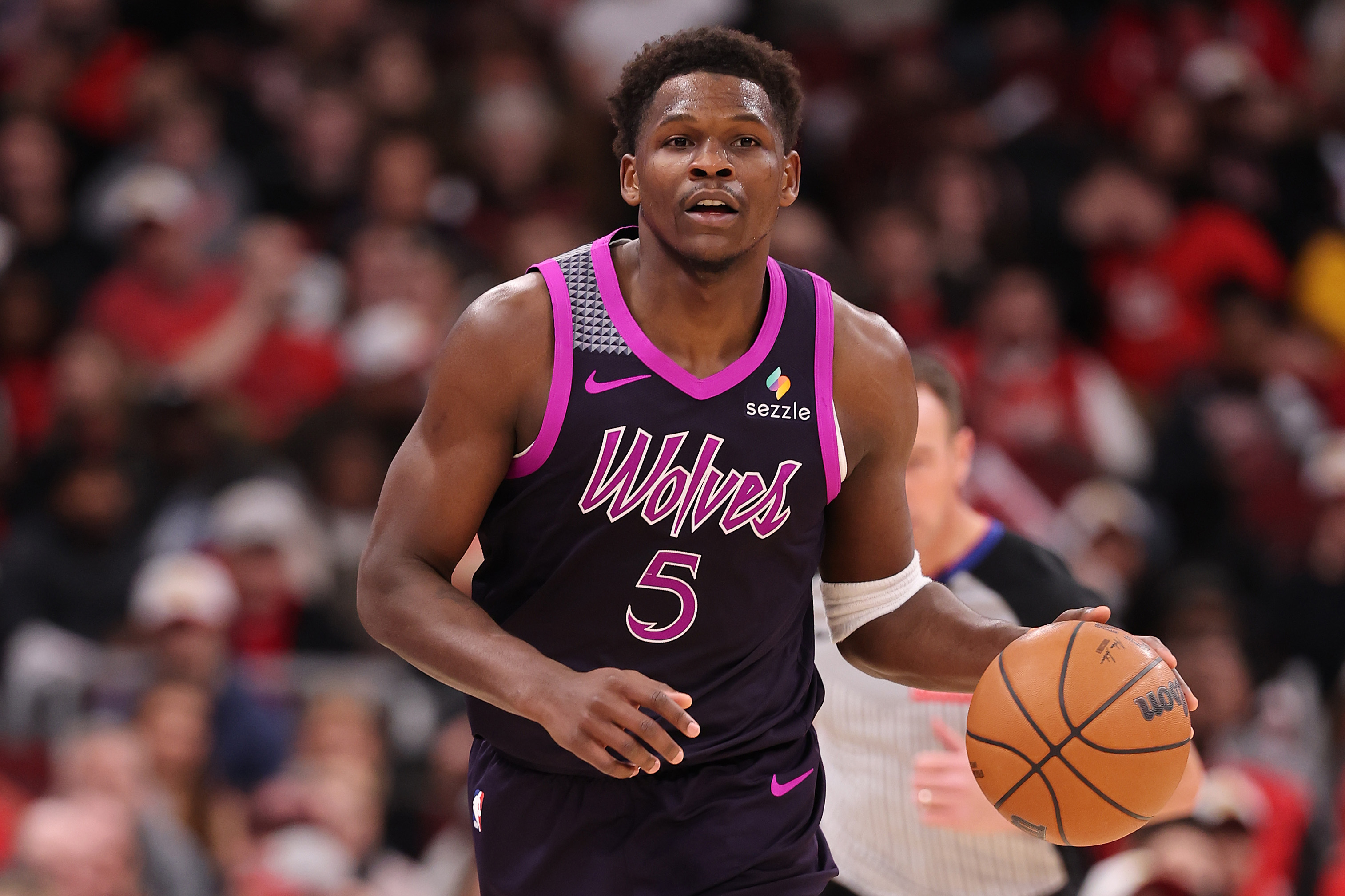 Getty CHICAGO, ILLINOIS – 29 DE DICIEMBRE: Anthony Edwards #5 de los Minnesota Timberwolves dribla por la cancha contra los Chicago Bulls durante la segunda mitad en el United Center el 29 de diciembre de 2025 en Chicago, Illinois. (Foto de Michael Reaves/Getty Images)