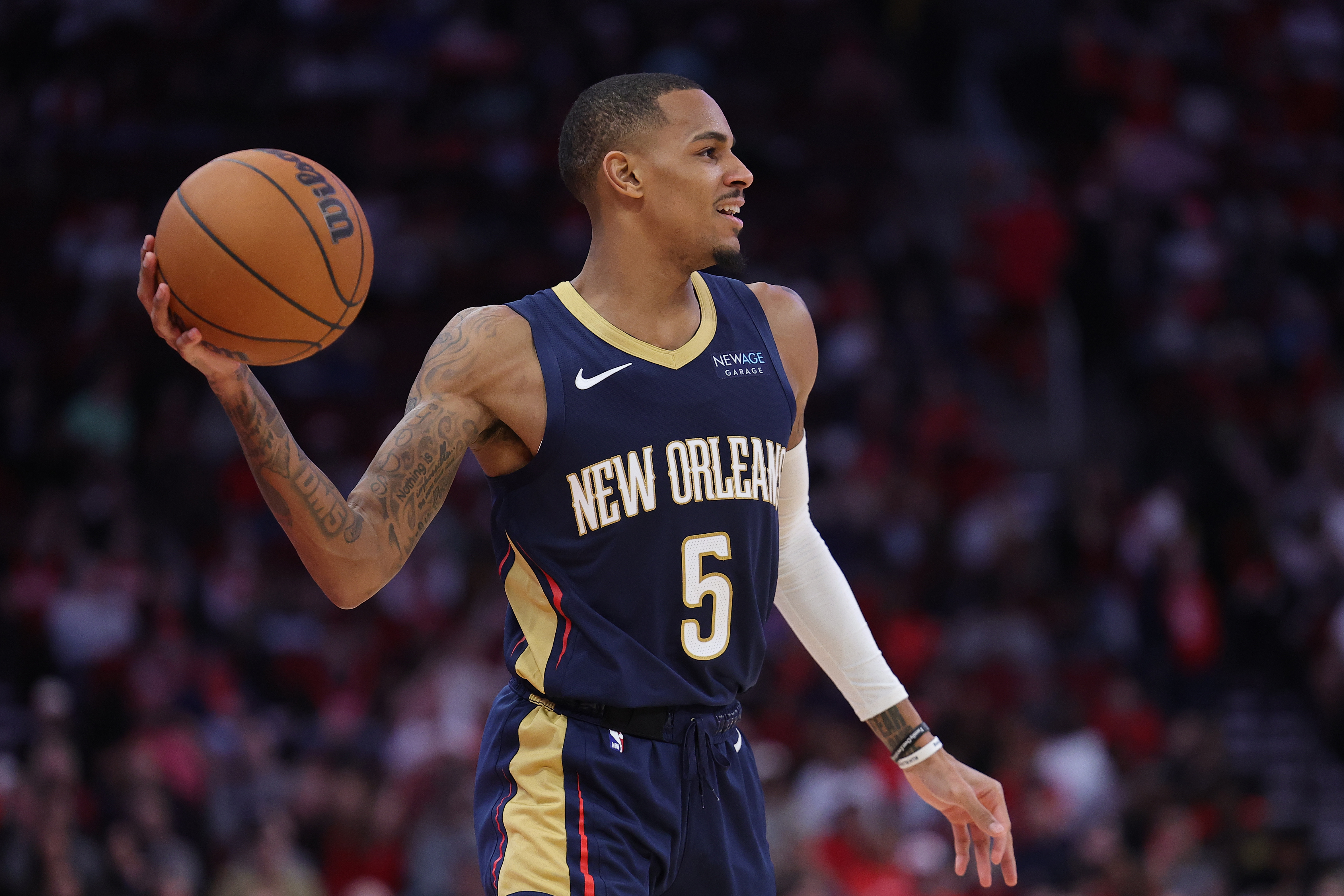 Getty HOUSTON, TEXAS – 19 DE DICIEMBRE: Dejounte Murray #5 de los New Orleans Pelicans maneja el balón contra los Houston Rockets durante la segunda mitad en el Toyota Center el 19 de diciembre de 2024 en Houston, Texas. (Foto de Alex Slitz/Getty Images)